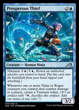 每当一个或多个由你操控的忍者或浪客对任一牌手造成战斗伤害时,派出一个珍宝衍生物。
