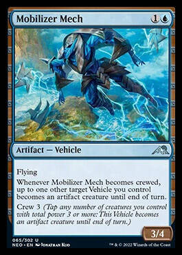 从你的牌库中搜寻一张武具或载具牌,将它放进战场。如果它的法术力值小于被牺牲的永久物,占卜2。