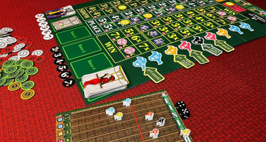 《Ready Set Bet》是一款赛马主题的桌游,由John D. Clair(代表作《太空基地》、《方块向前冲》等)设计,游戏中玩家将前往赛马场,在最喜欢的马身上下注,试图赢得最多的钱。