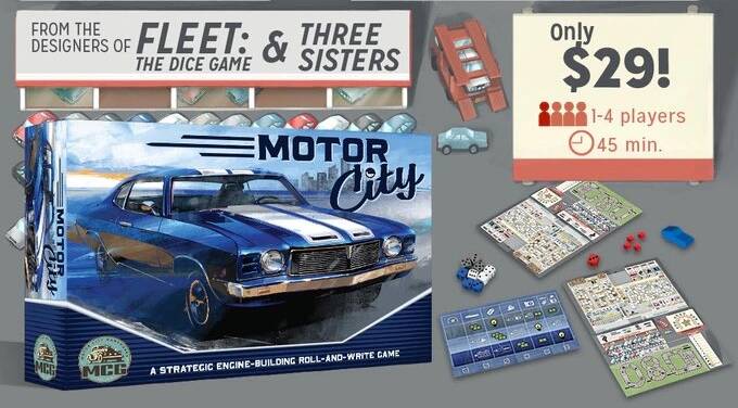 《Motor City》是一款以底特律汽车生产的鼎盛时期为背景的骰写游戏,玩家将经营一家汽车工厂,在设计、测试、生产和销售等方面解锁奖励,尝试获得最多的分数。