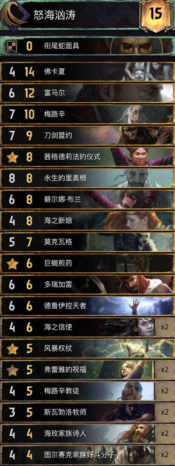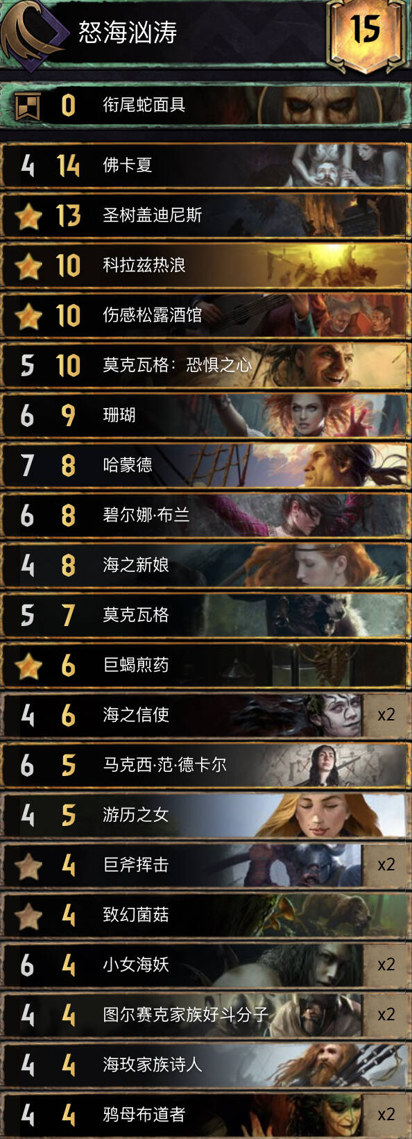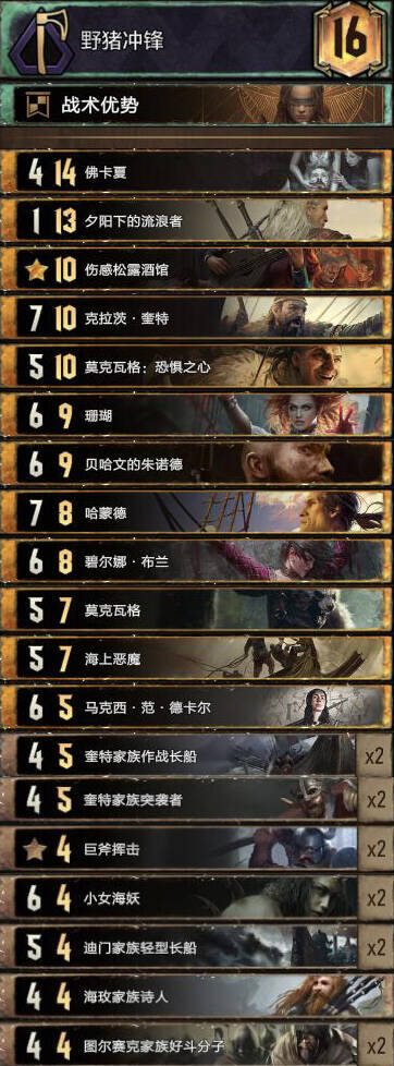 一套打法灵活的下雨岛,点数扎实,虽然没有最极致的长短局能力,但是大量墓场拉牌的能力使得这套牌的引擎利用率非常高,加上下雨2-3回合启动的特性(一张下雨一张信使),使得这套牌在r1r2有着极强的追点和换金卡的能力,然后用自己擅长的7-8卡r3(常见)或者用养好的梅路幸逼短局弱势卡组r3收尾(少见)