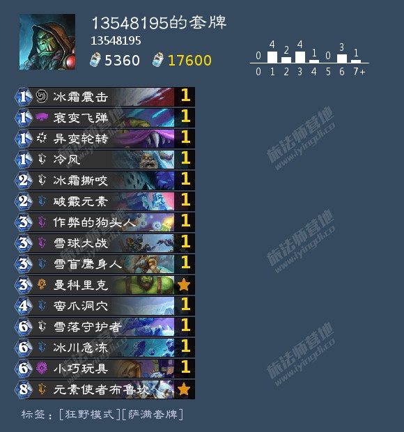 我用这套牌在英雄模式一般都能打到六胜左右,在休闲也打过十二胜,感觉挺强的,但是没见过其他人用过,营地也没发过类似的,所以发出来和大家讨论一下。