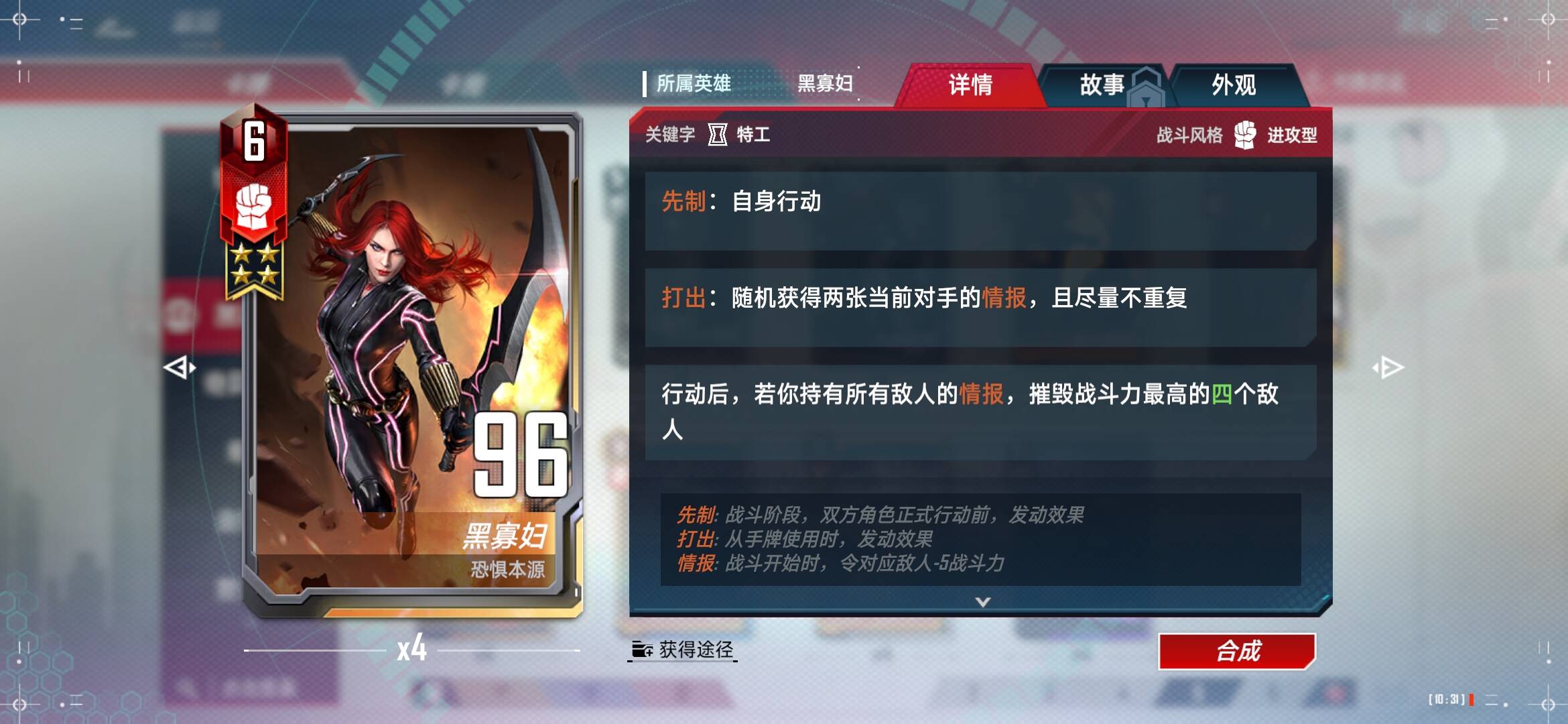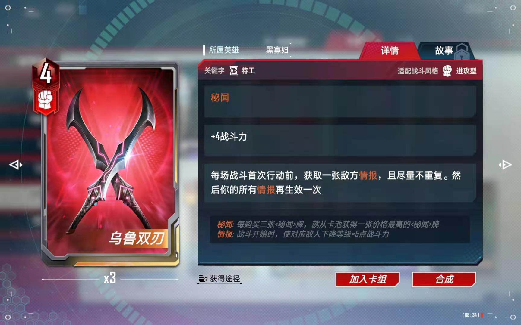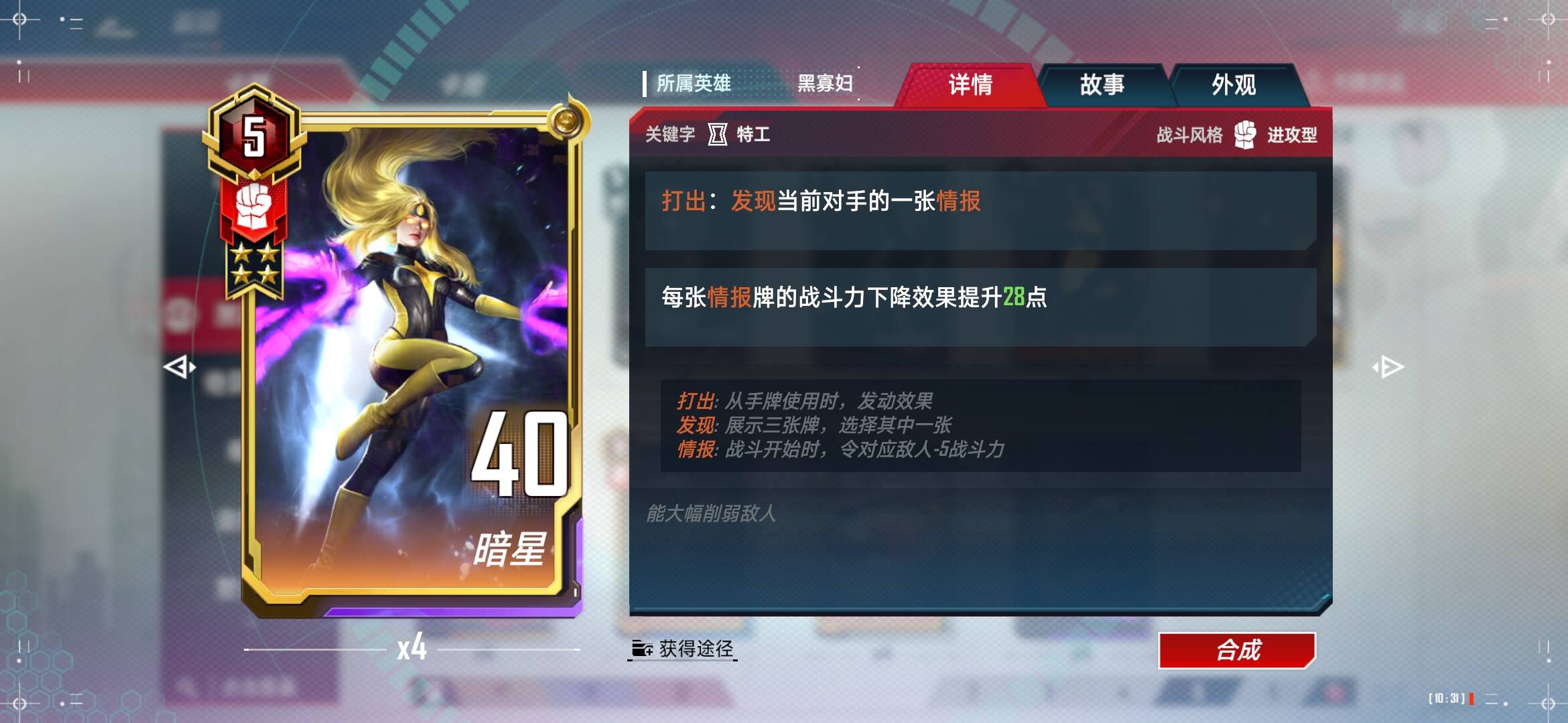 1、升级到五级商店最重要的是找暗星,大家注意暗星这张卡是在场的时候,才能给情报加幅度,所以一般都把暗星放最后位置,能吃到蛛丝喷射那可太好了。