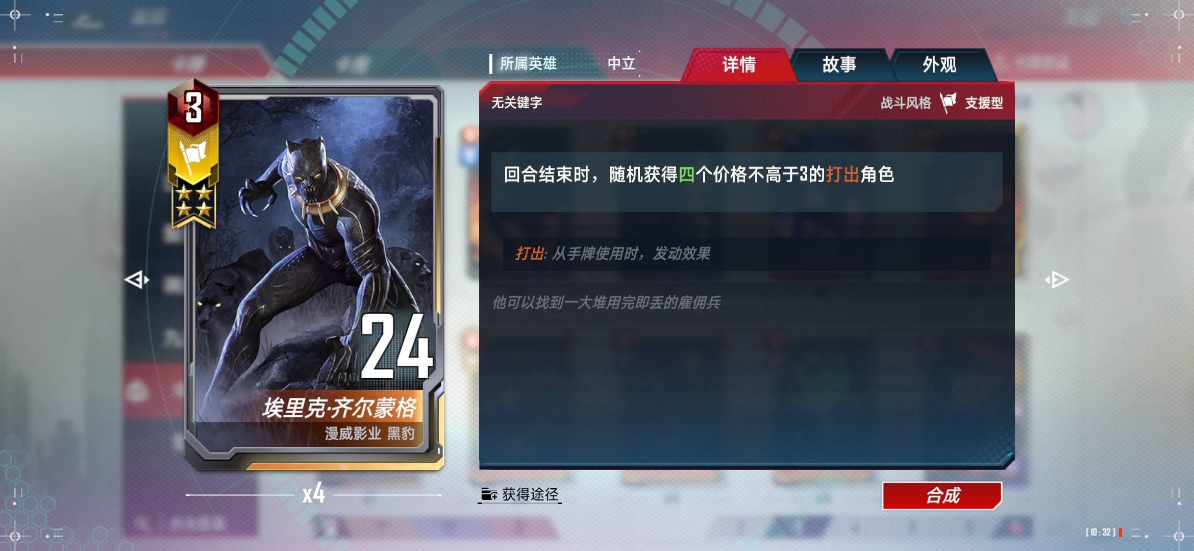 按照本文操作细节,把所有的单张2费卡过滤了以后,(三费只打出援军战争机器,其他不用刻意过滤,本泽马本来就是要打出锁血的),4费以下具有关键字的角色卡有4种: