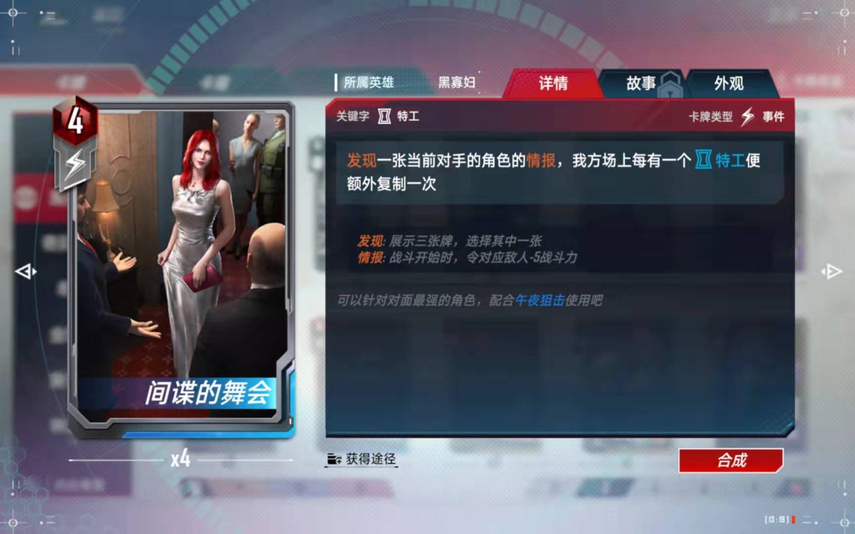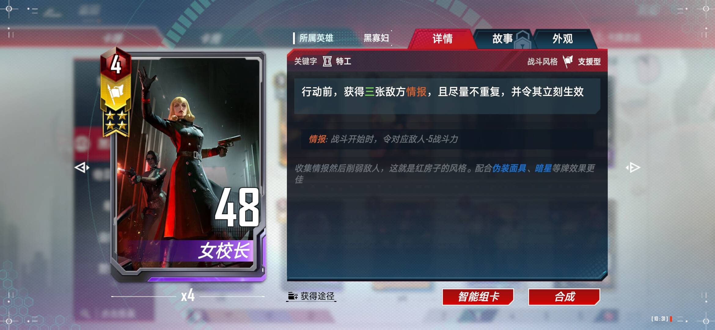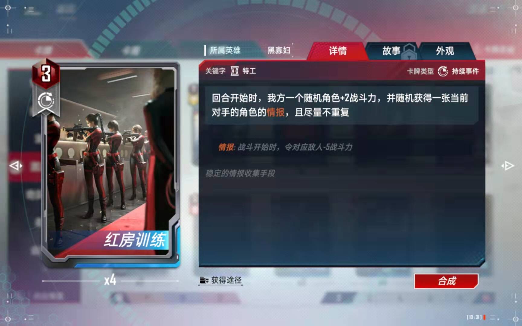 【情报流】也有硬伤,就是如何在前期锁血的问题,前期没有能打的单位,红房训练是延迟一个回合的,红房训练拿的越多,前期越弱,但是他是绝对关键的事件卡: