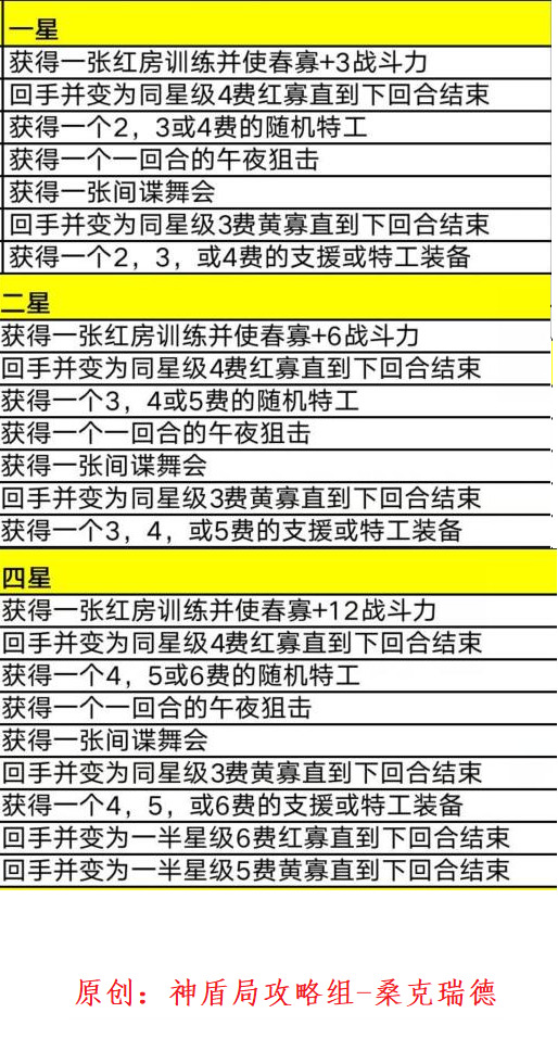 春寡这张卡代替了传统的叶莲娜检索红房事件,发现卡牌是三选一,大大增加了拿到核心卡牌的概率。二星有机会直接获得暗星,四星还有机会获得恐惧本源。关于春寡的详细内容,大家有兴趣的话可以移步我攻略组桑克瑞德的攻略: