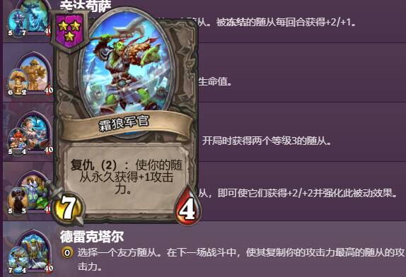 特型随从有些特别强有些特别弱暂且不说,我想说的是后面2种,由于这个版本4升5费用变多且没有了护甲,你升本的效应其实没有养伙伴的收益大,上个版本基本膨胀身材主要依靠高本核心随从,快速升本用科技碾压,现在这个版本升5贵了,如果碰不出祖母光耀,只能依靠伙伴加身材,不能成长的伙伴就凭空比别人少一个大怪很容易输团战,所以你会发现排名上伙伴能增加身材的英雄会比每回合给资源的随从要强很多。
