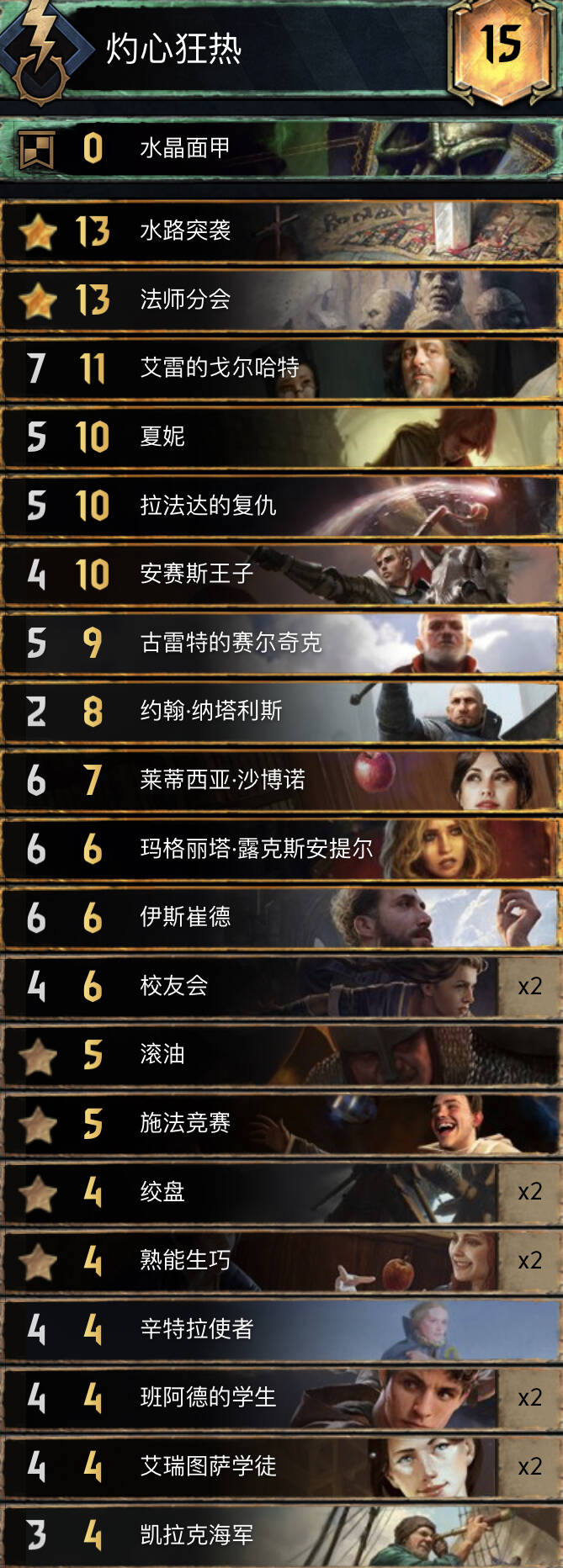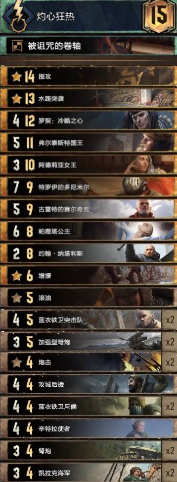 这套卡组基本就是打r1争夺战,有约翰约阿血剑,落雪领袖亚凡两套爆点。