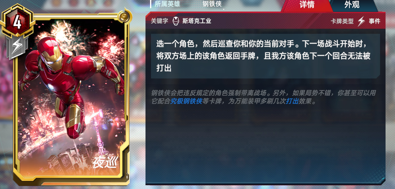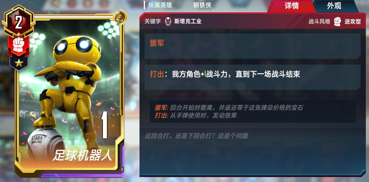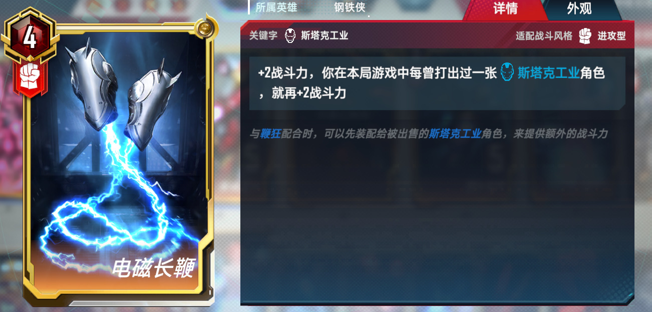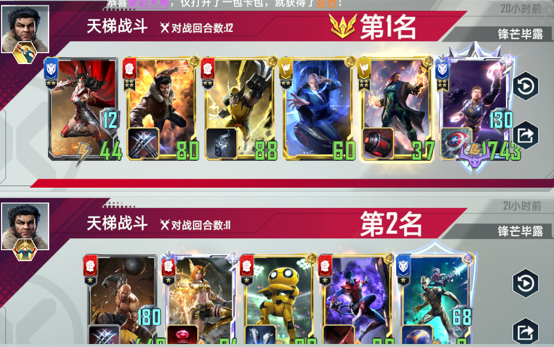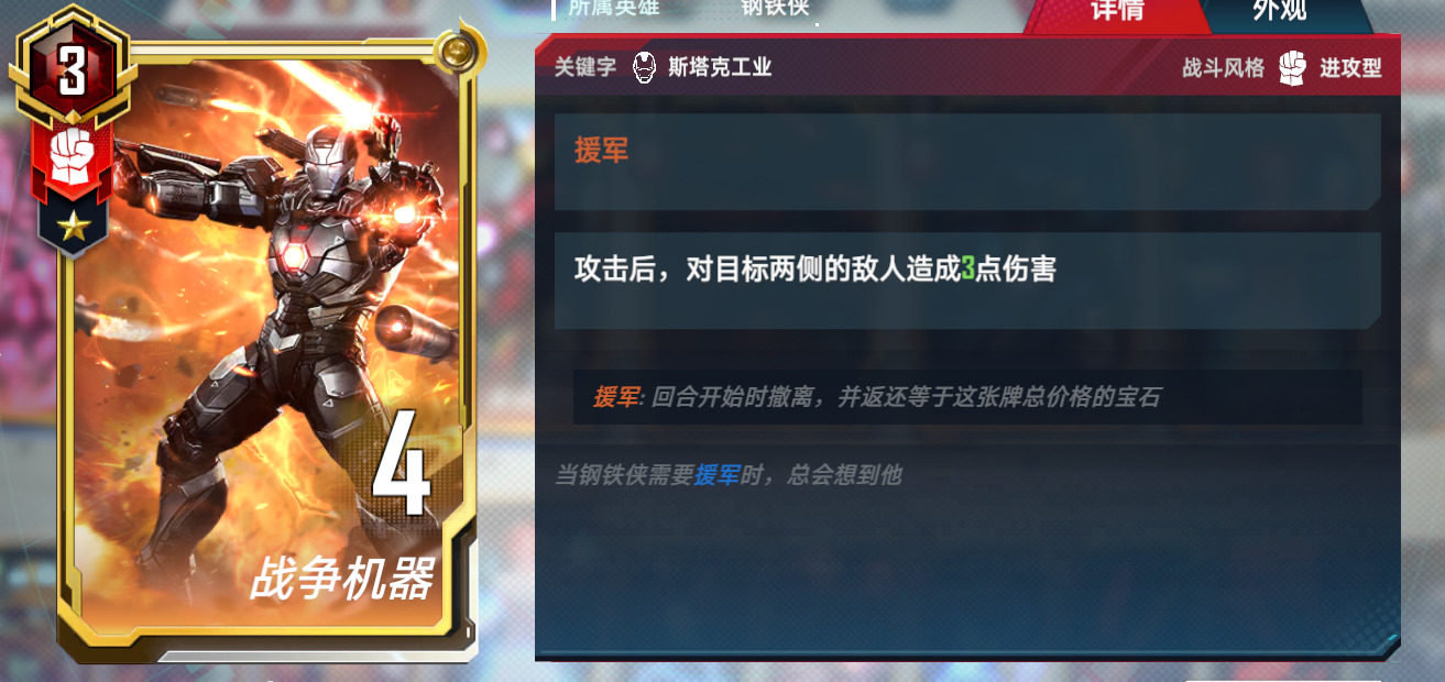 3.万能狼。万能觉醒双核卡组,这套有两个组成方式,在钢铁侠五费上去做选择,万能+隐匿,或者是万能+能量剑。优势是格子不会太紧张,曲线比较平滑。