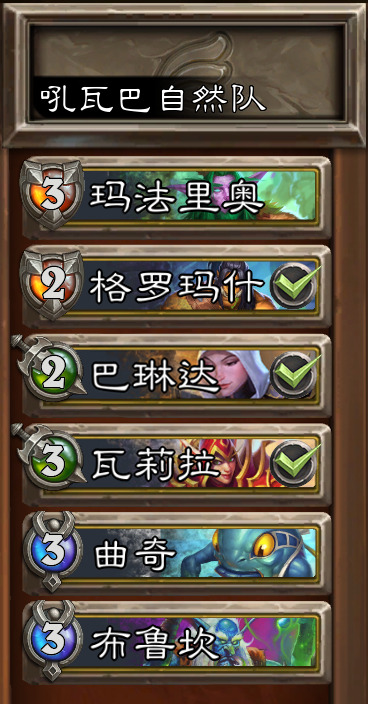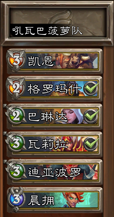 在版本的大初期,很多老哥都在玩吼瓦巴的阵容,研究这套可快(瓦莉拉潜行)可慢(瓦莉拉刀扇慢加速)的灵活阵容,后来逐渐由于首发双绿难以抵抗冰王的问题而逐渐废弃。