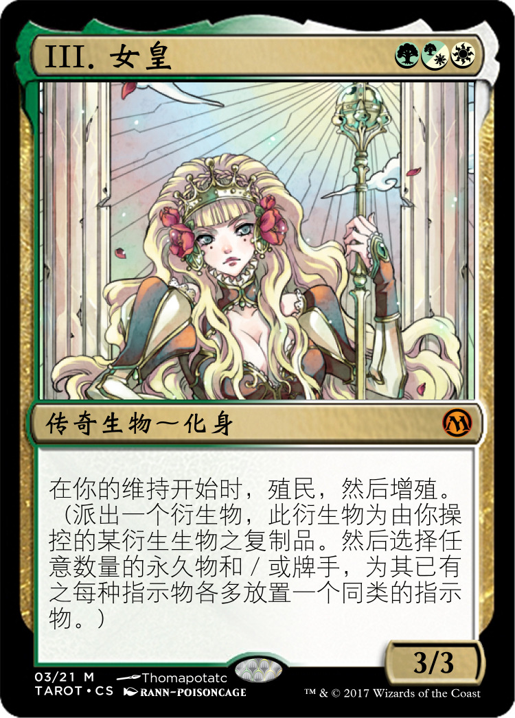 吾为《女皇》,司掌「丰饶」。勿须担心,只要怀着慈爱用心养育,大 地便会给予你丰收。
