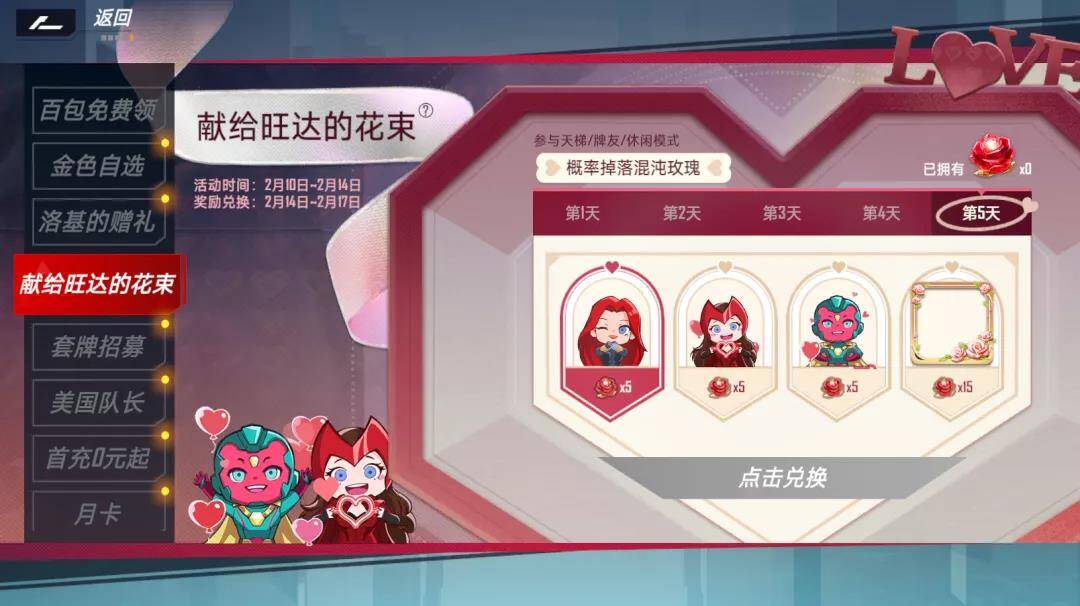 使用“混沌玫瑰”可于2月14日在活动界面兑换
