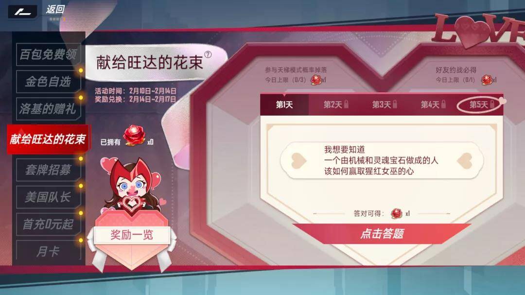 活动期间通过完成对局、正确回答关于旺达的问题