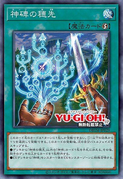 ●从卡组把「神碑の穂先」以外的1张「神碑」卡加入手卡。那之后,从对方卡组上面把1张卡除外。