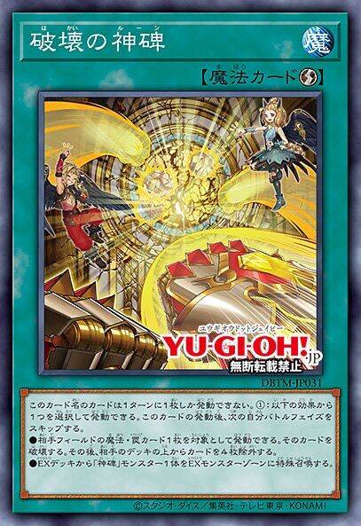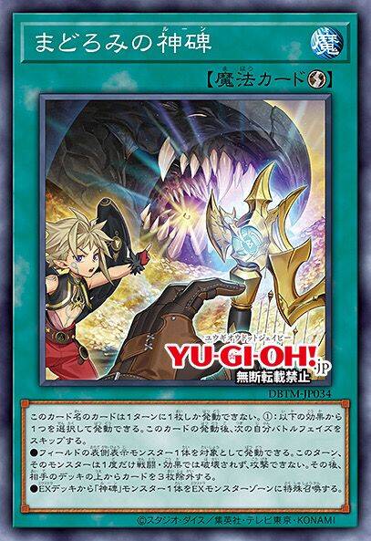 ②:1回合1次,自己把「神碑」速攻魔法卡发动的场合,以自己墓地的「神碑」速攻魔法卡最多3张为对象才能发动。那些卡用喜欢的顺序回到卡组最下面。那之后,自己从卡组抽出回去的数量。
