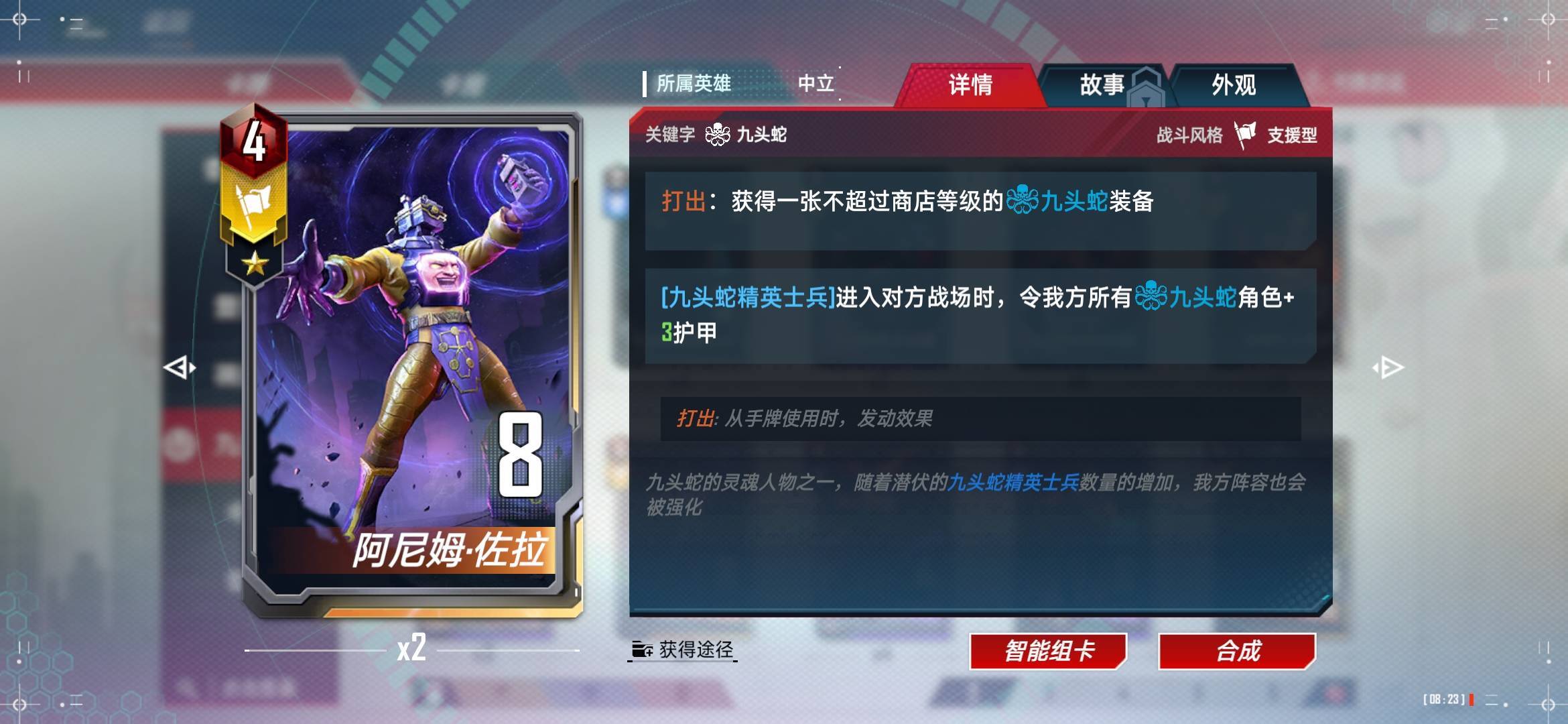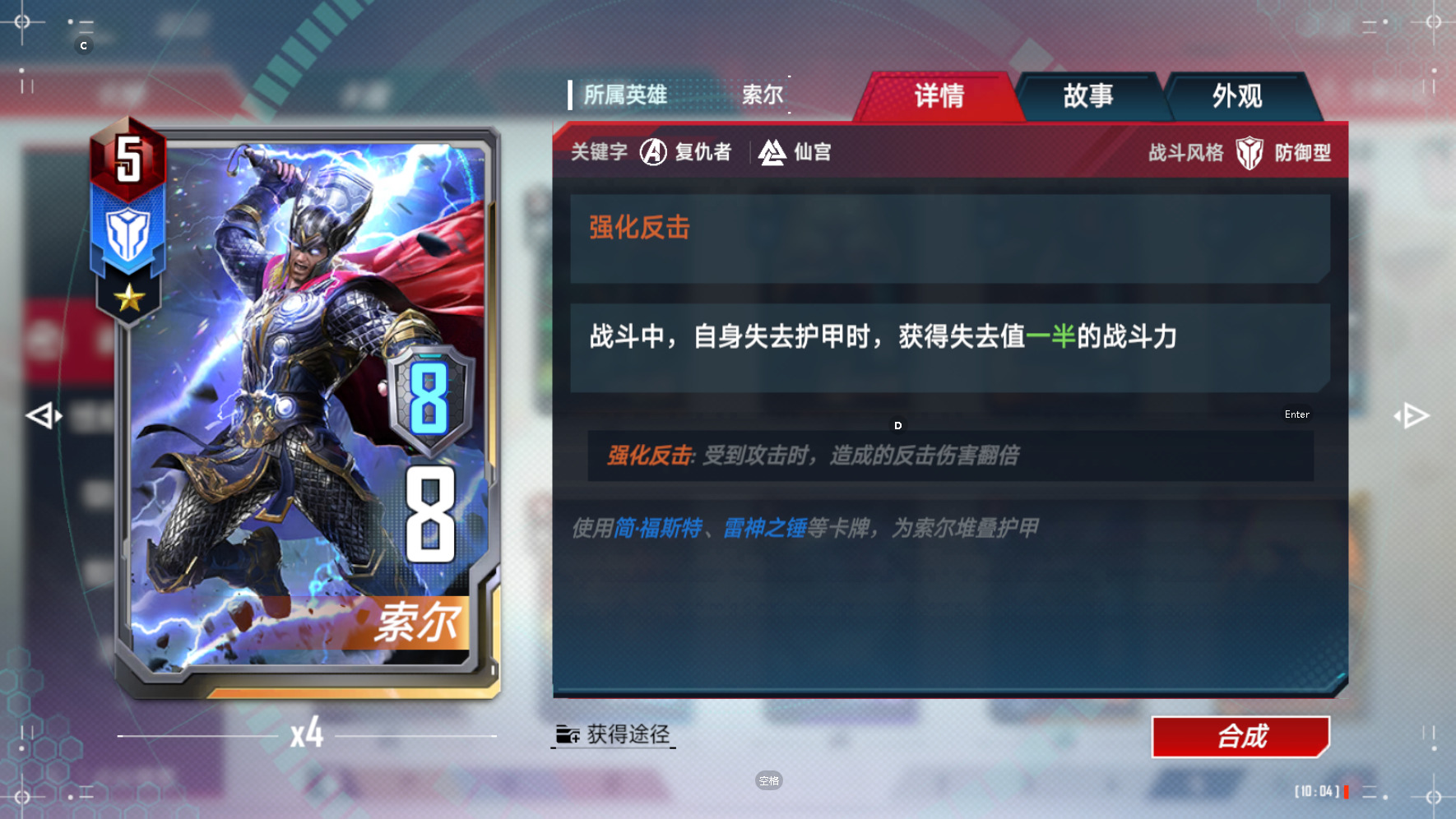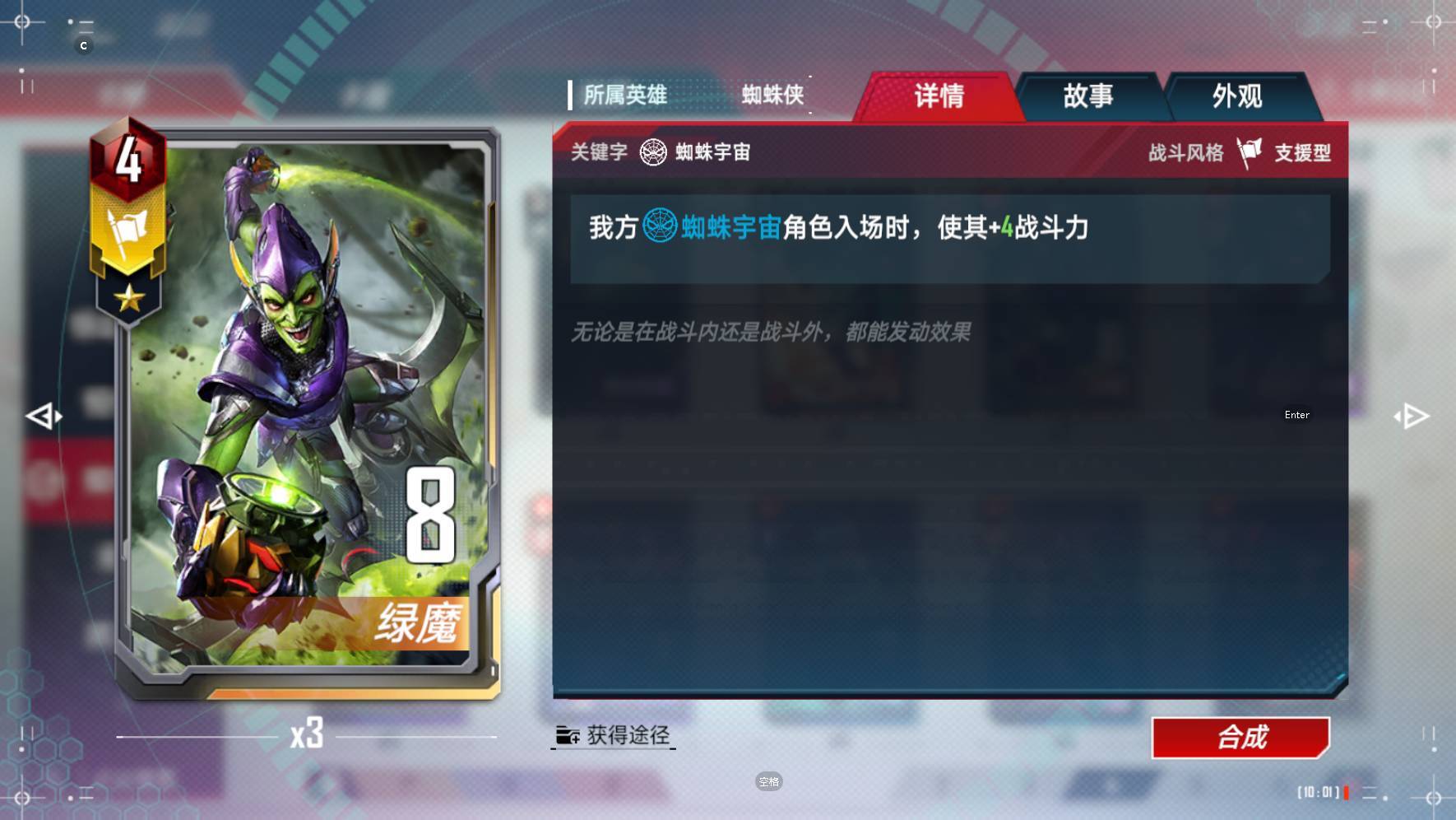 诱导目标:亚当。和上面类似的情况,本来我认为万能和亚当的诱导条件都是红卡造成物理伤害,但是这场对局就没法解释——如果亚当和万能的诱导条件都仅仅是物理伤害的话,我场上3个这么大的银河护卫队角色打了绝大多数输出,应该发亚当才对,怎么给的是万能?后来又单独测试了许多次后给万能的诱导条件加上了“通过角色技能给我方角色增加战斗力”。这样就能解释这场对局了:是因为两个星云的破敌加了大量战斗力导致诱导出万能。然后我按照这个假设尝试了全蓝诱导万能并取得了成功: