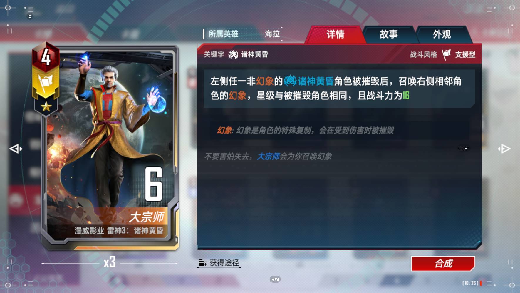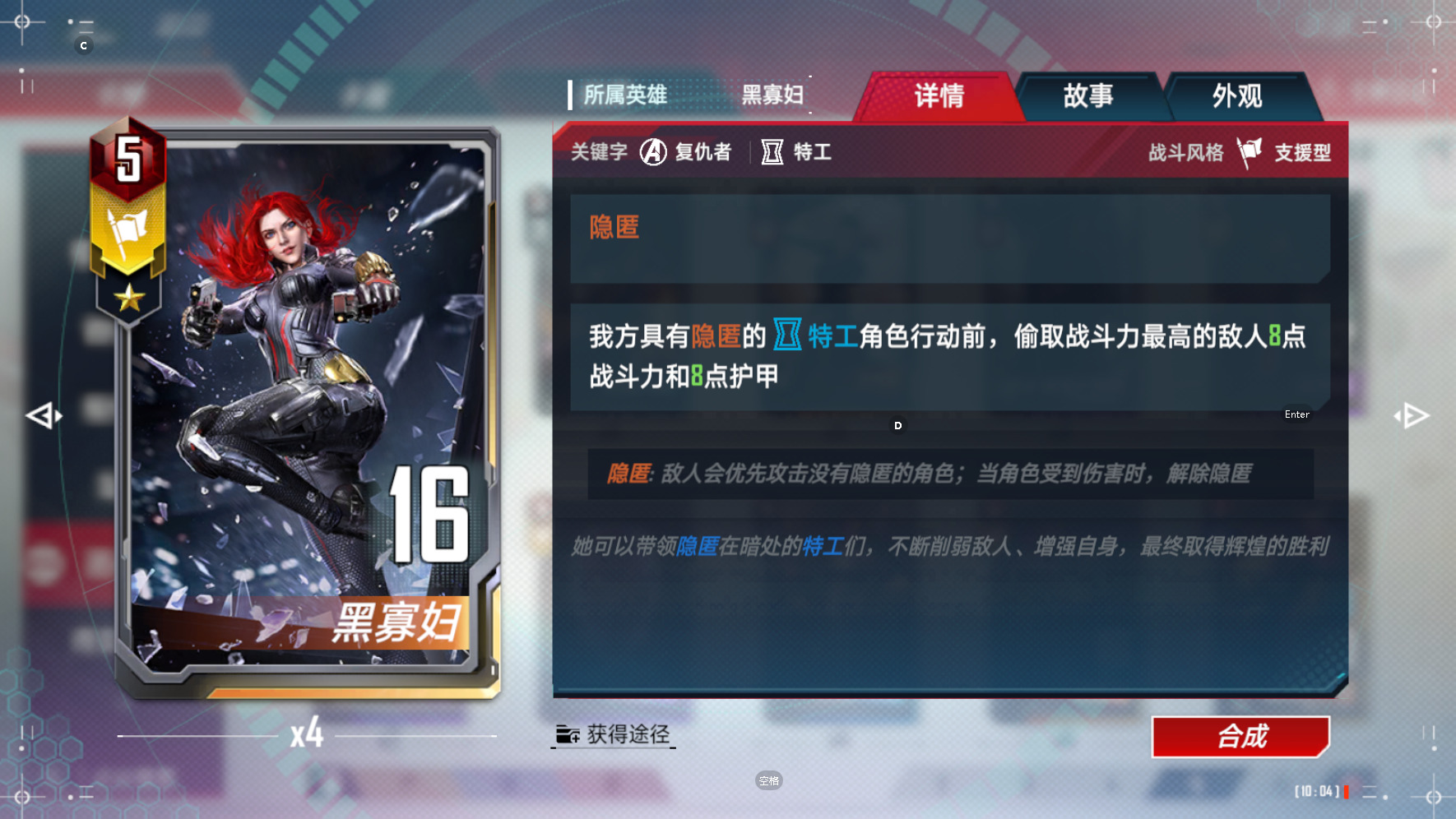 黑寡妇(洛基):我方角色造成大量物理伤害。之前攻略里说有幻象军团技能同盟稳定出寡妇是有些武断了,如果阵容蓝卡过多或者黄卡幻象总是装上打伤害的武器的话也是有可能歪的。