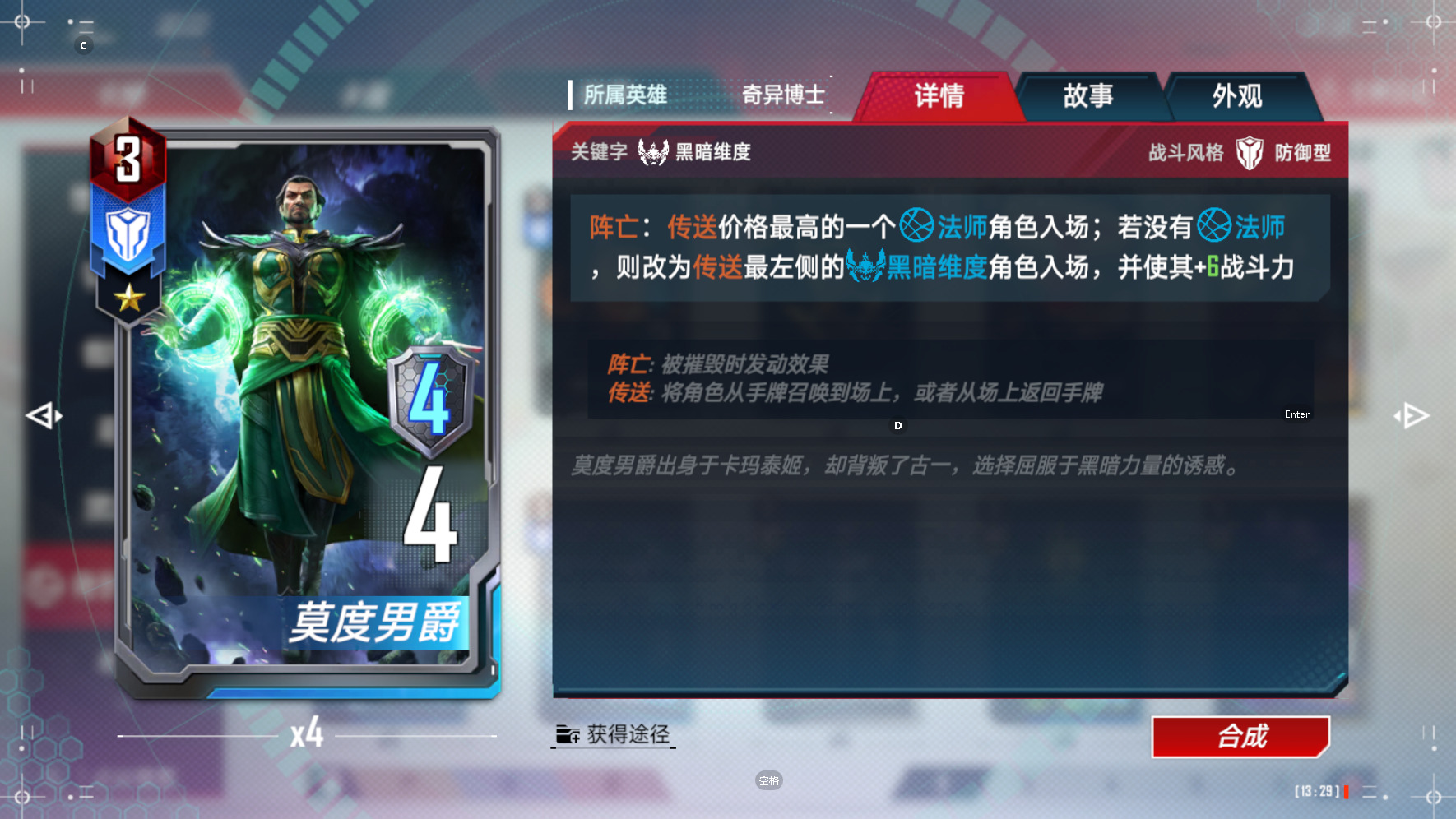 可以看到这是纯蓝阵容,克里亚的技能是传送随从入场后本体和传送的随从永久+5战斗力。克里亚的技能和事件卡在准备阶段给随从们加了许多战力,战斗阶段也有尤里克和斗士入场提供战力加成,不过不知道战斗阶段的加成算不算诱导条件。总之依靠高频数的战力加成靠全蓝阵容诱导出了万能机甲。算是一定程度上验证了万能诱导条件的假设。