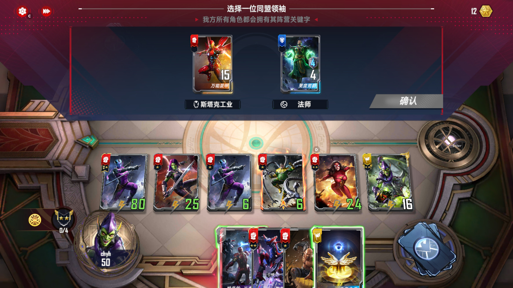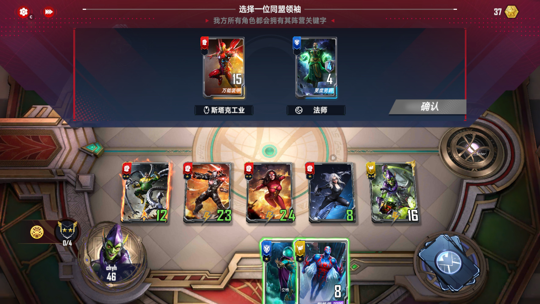 我方领袖是绿魔,在一村只有进攻型角色和绿魔造成过伤害,但是因为开局就拿到了战争机器并给了他+15攻,游戏中斯塔克工业角色造成了许多伤害,但是阵容中没有银河护卫队角色,所以在同时满足亚当和万能的诱导条件的情况下发了万能而不是亚当。至于为什么另一个是莫度,我猜测是因为绿魔一技能为亡语额外触发两次,领袖技能可能也和诱导有关系,但是因为证据不足所以仅作为猜测,没有放在诱导条件里面。