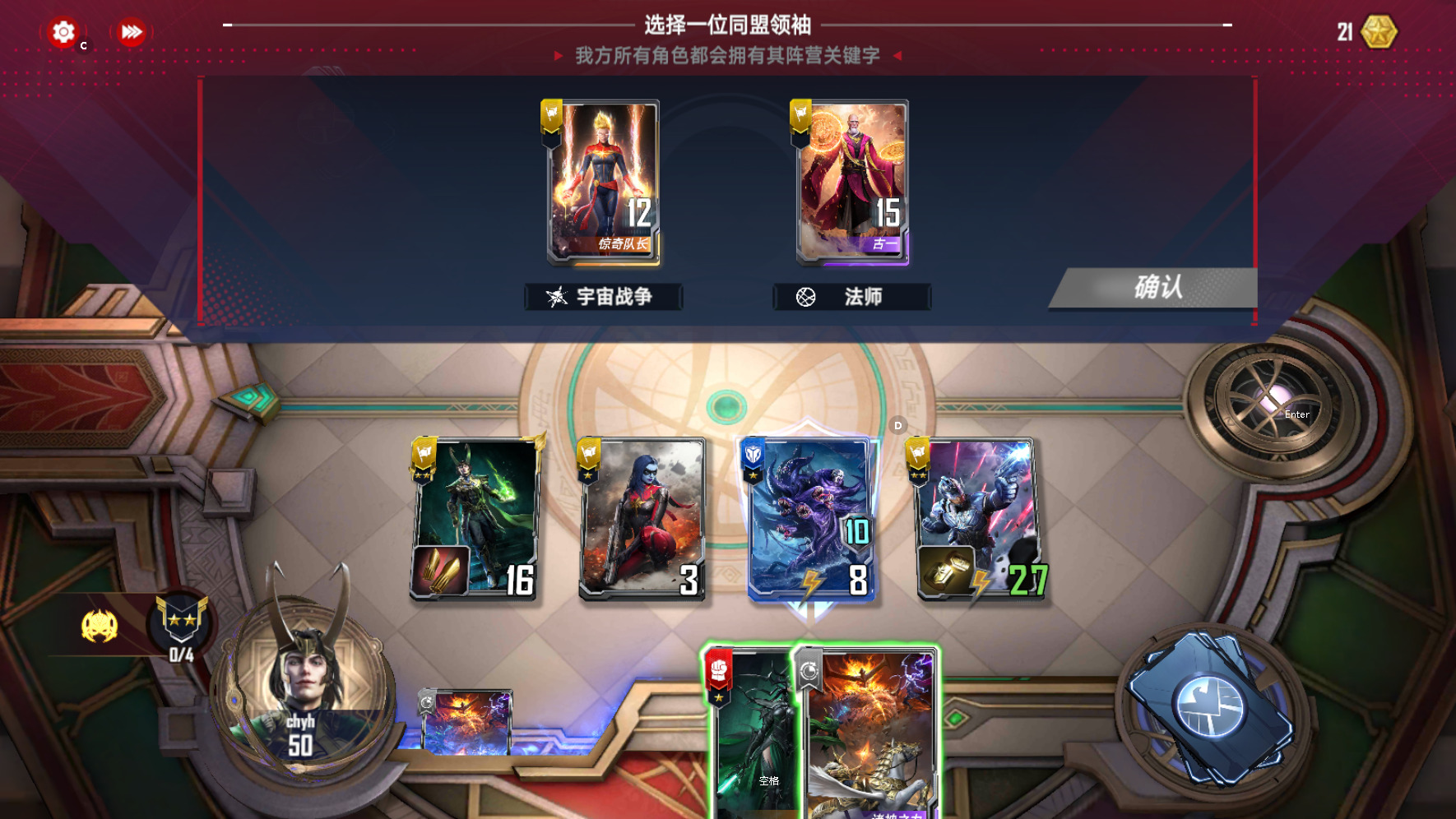 诱导目标:玛威尔。这算是比较典型的失败案例,也是我一开始玩冒险的时的困惑之一——我场上全是宇宙战争为啥不给玛威尔??他可不是乱发的啊,他这是有备而来首先我方攻击最高的+15的4星罗格和奥丁并没有携带武器,一村对局中造成了大量物理伤害,符合绿魔的诱导条件。而且这个阵容嘲讽死掉后罗格经常一打多,造成物理伤害的同时召唤大量士兵,士兵又会触发亡语,所以整个一村打完我们的主要行为就是物理伤害(绿魔)+亡语(大宗师),技能伤害较少,这样就算场上全宇宙战争也是不会发玛威尔的,而是发对应的绿魔和大宗师。