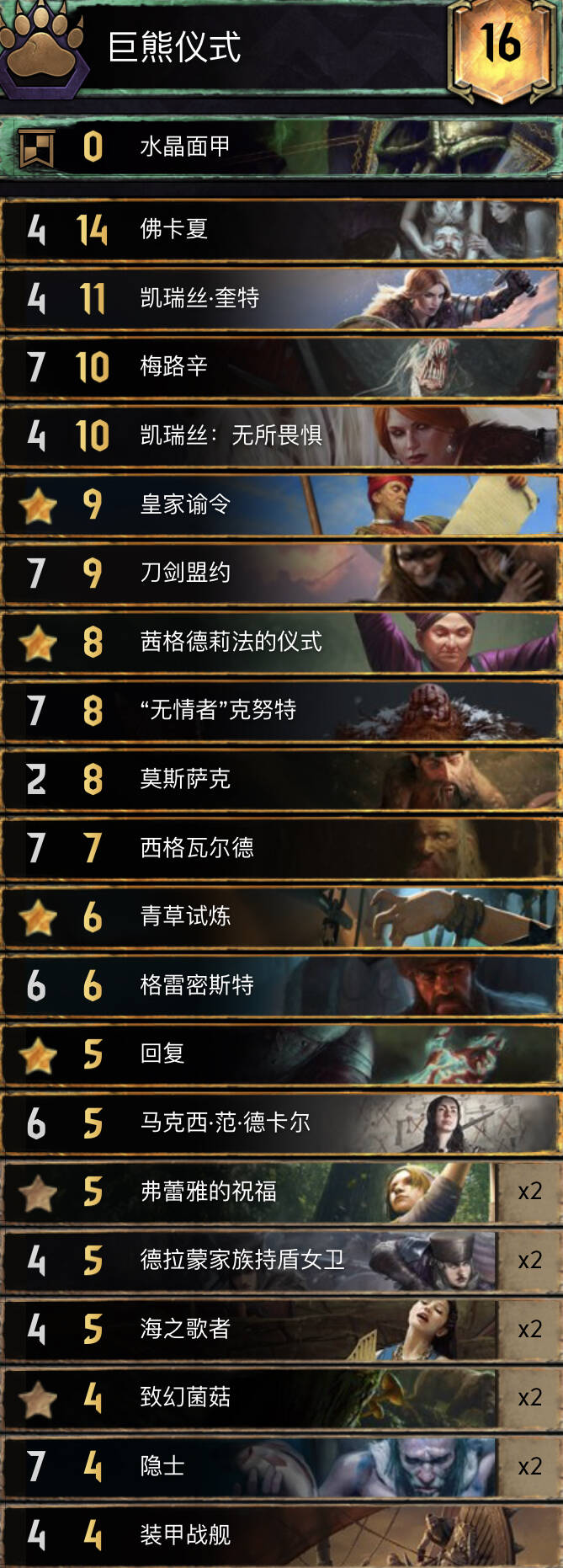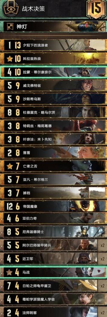 我今天出分的北方卡组,容错率高一些,点数扎实一些。不过感觉北方卡组强度是虚的,遇到正规军或者被逼牌了就倒了。
