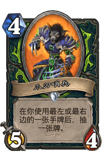 一开始这张牌是1费,“在本回合中,每当你召唤一只野兽,使其获得+1/+2”。它现在的样子我也很喜欢,它们支持的都是铺场快攻型的猎人,只是支持的形式不同。