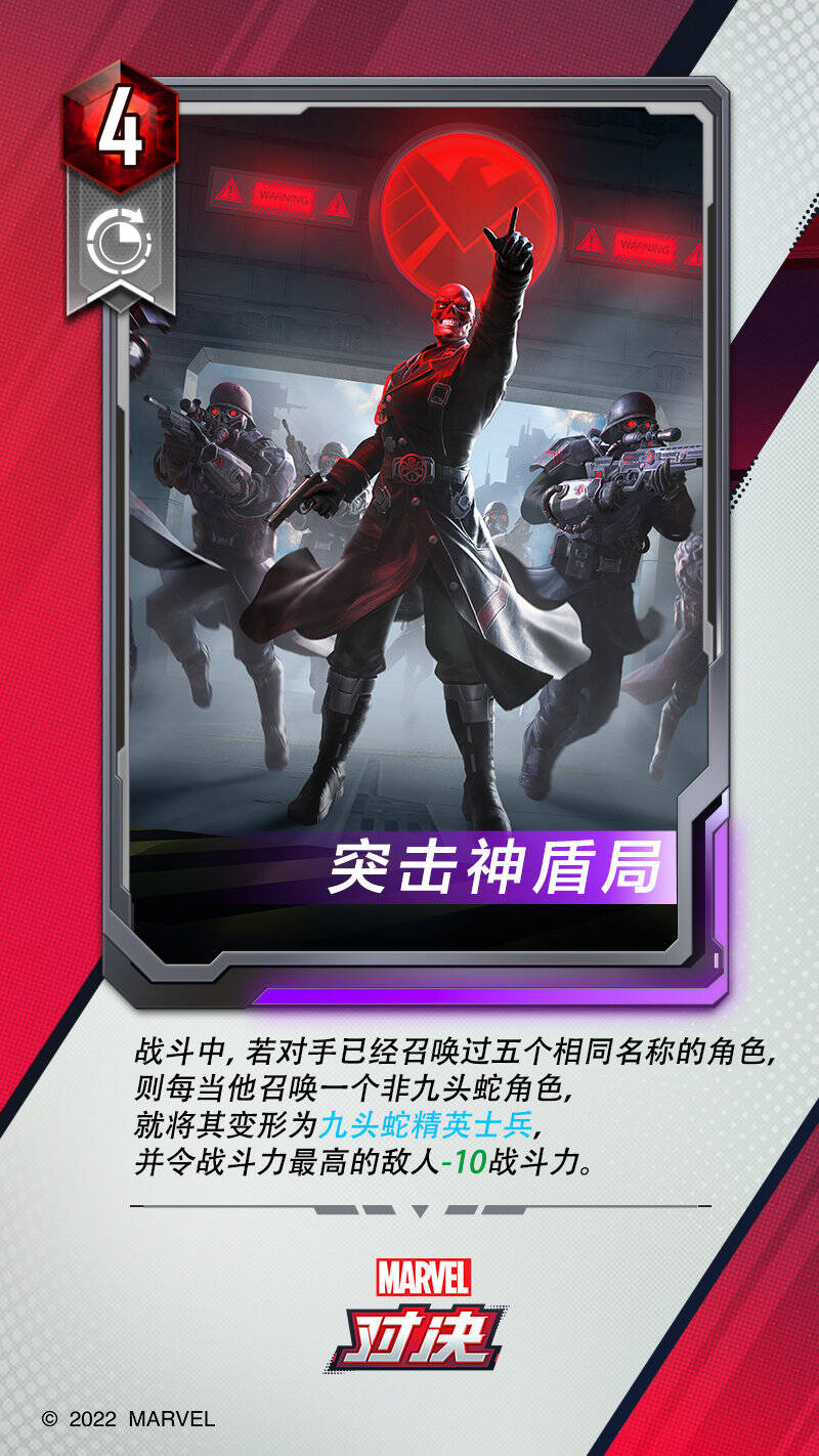 九头蛇再次对神盾局发动突击!针对高频召唤的全新事件卡[突击神盾局]将于本周更新后登录《漫威对决》