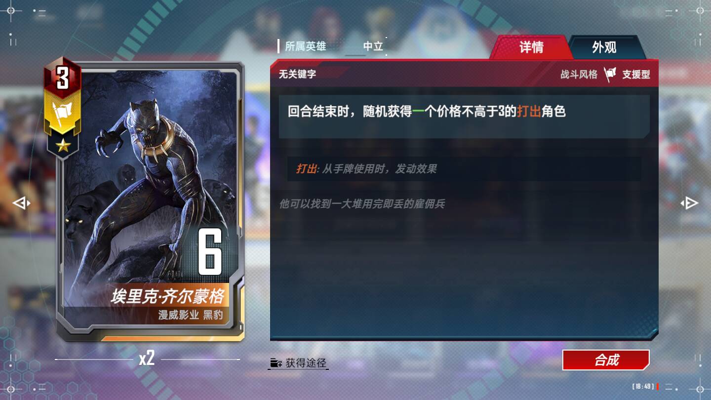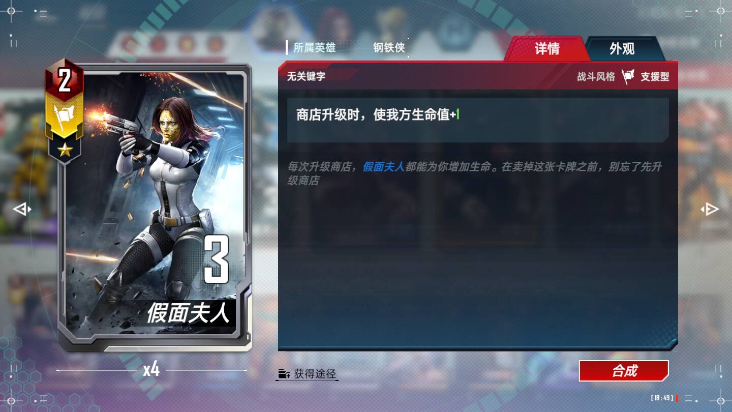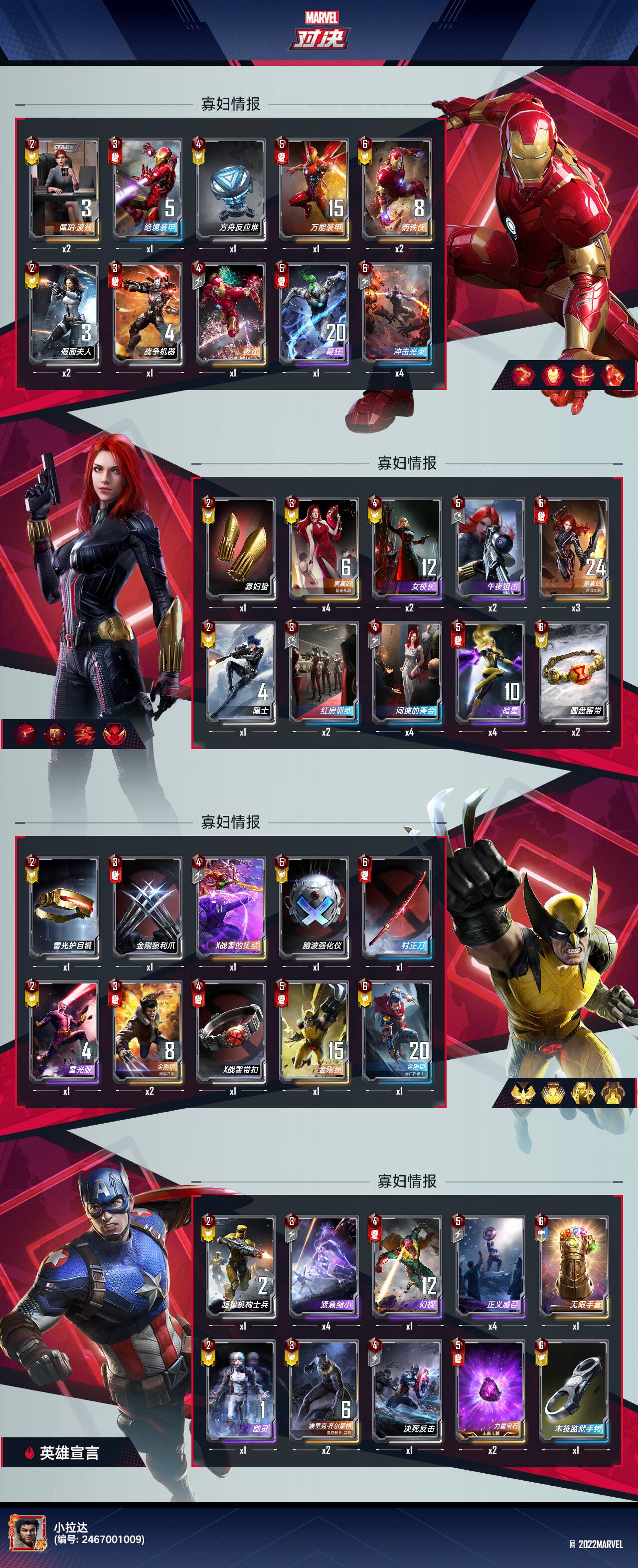 我从开服起就开始玩这个游戏了,一玩上就觉得这个游戏不错,原画非常精美,加上漫威题材我也很喜欢,自己带卡+自走棋的模式使得它在一众自走棋中脱颖而出。但是有些问题不吐不快,我算是炉石老玩家了,炉石传说之所以让我一直玩下去,不仅因为暴雪出品必属精品,还因为零氪、微氪、重氪玩家都能找到自己的玩法。而漫威对决把英雄卡包设置成只能用氪金道具购买让我不能理解,看似每天能免费赚几千金币,但是一包卡所返的尘只有几十点,要合成一张紫卡要1200,金卡4800,算一算便知道有多贵。开到重复橙也是非常难受,我在星爵满4以后已经开到两次重复的了,一次是抽到不想要的卡换成星爵,一次是抽到满4的卡换成星爵,那感觉比***还难受。希望策划能多考虑下玩家的体验把。