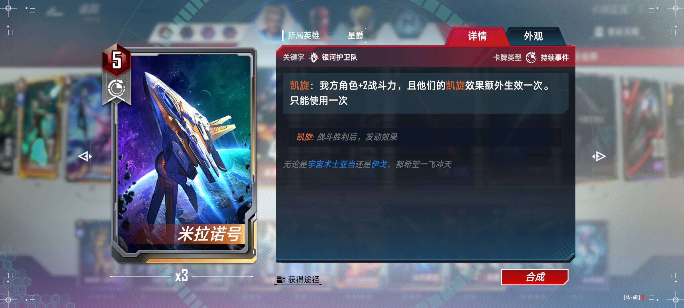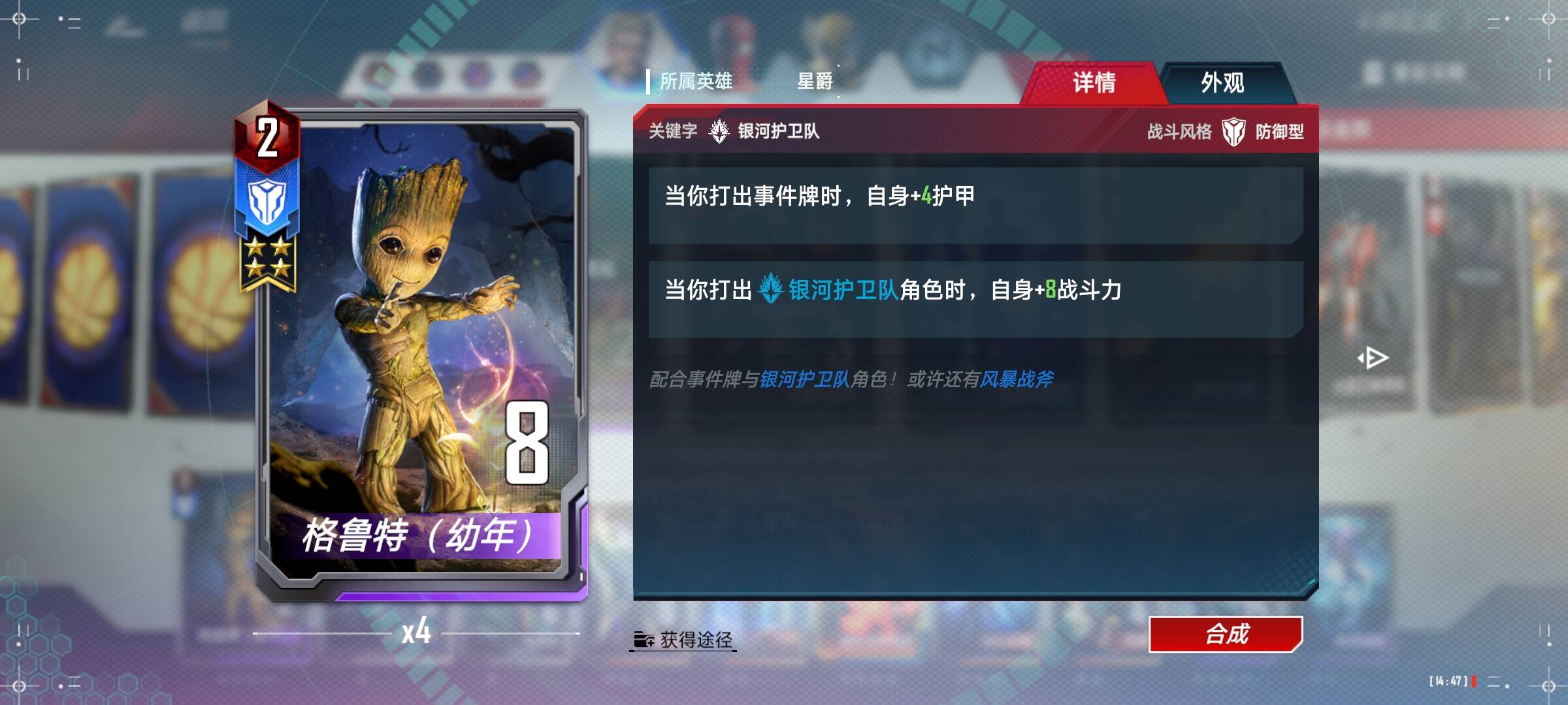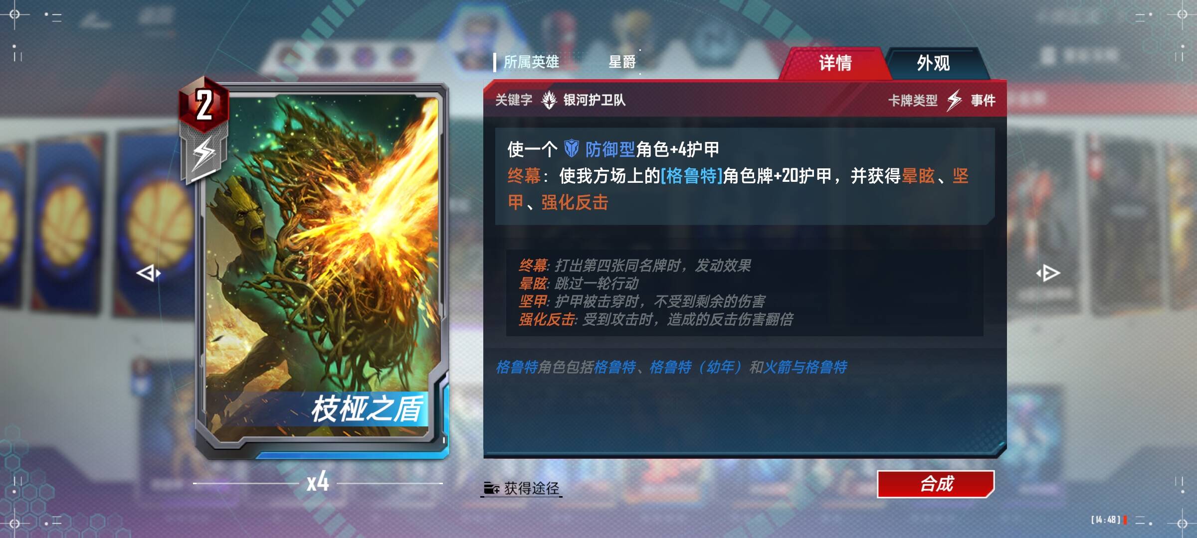 星爵:两张就够了,可以看到2星和4星星爵只差了一次生效,但是却贵了10宝石,我个人是觉得不太值得,可以随个人喜好满4。