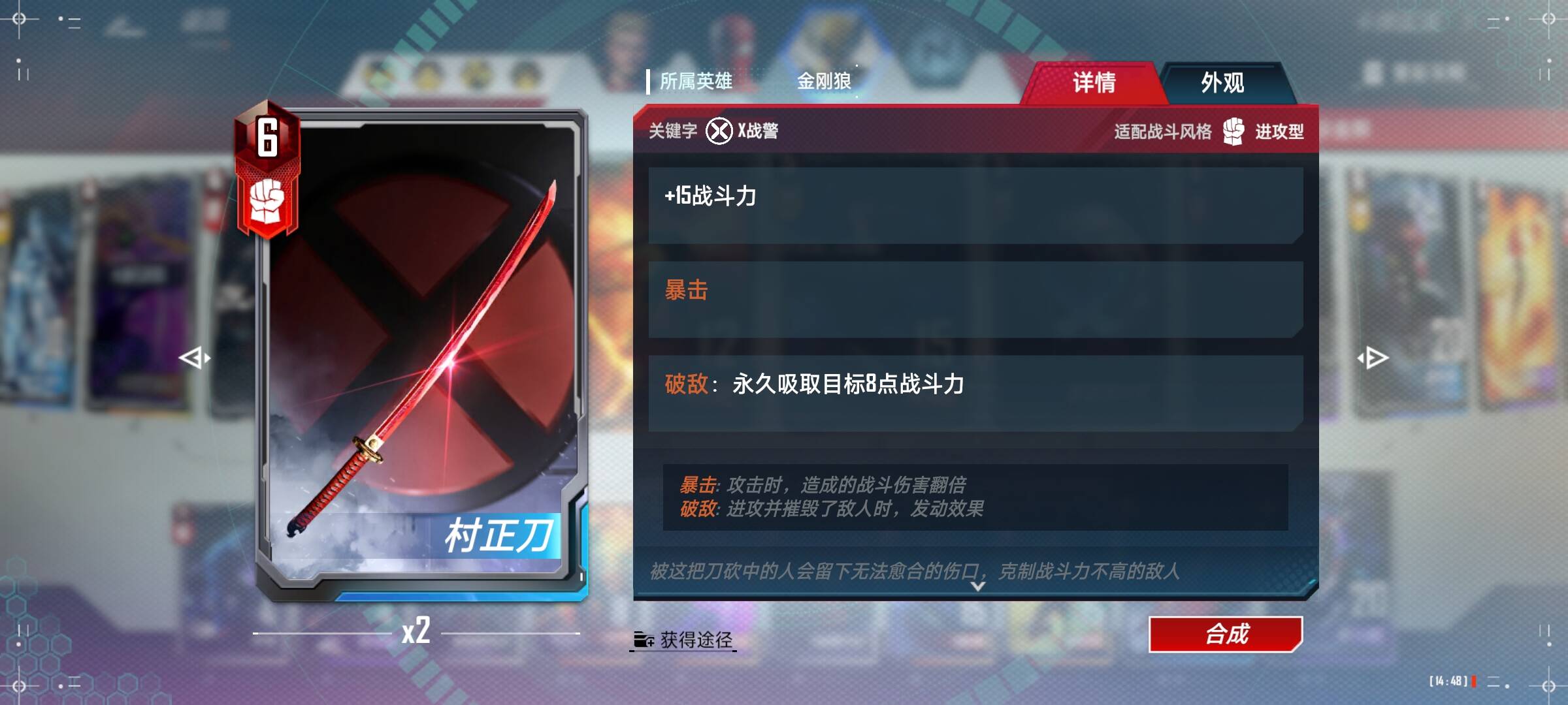 而且金刚狼爪+12战力也可以作为伊戈的启动武器来使用。(如果有红宝石还是尽量上红宝石。)