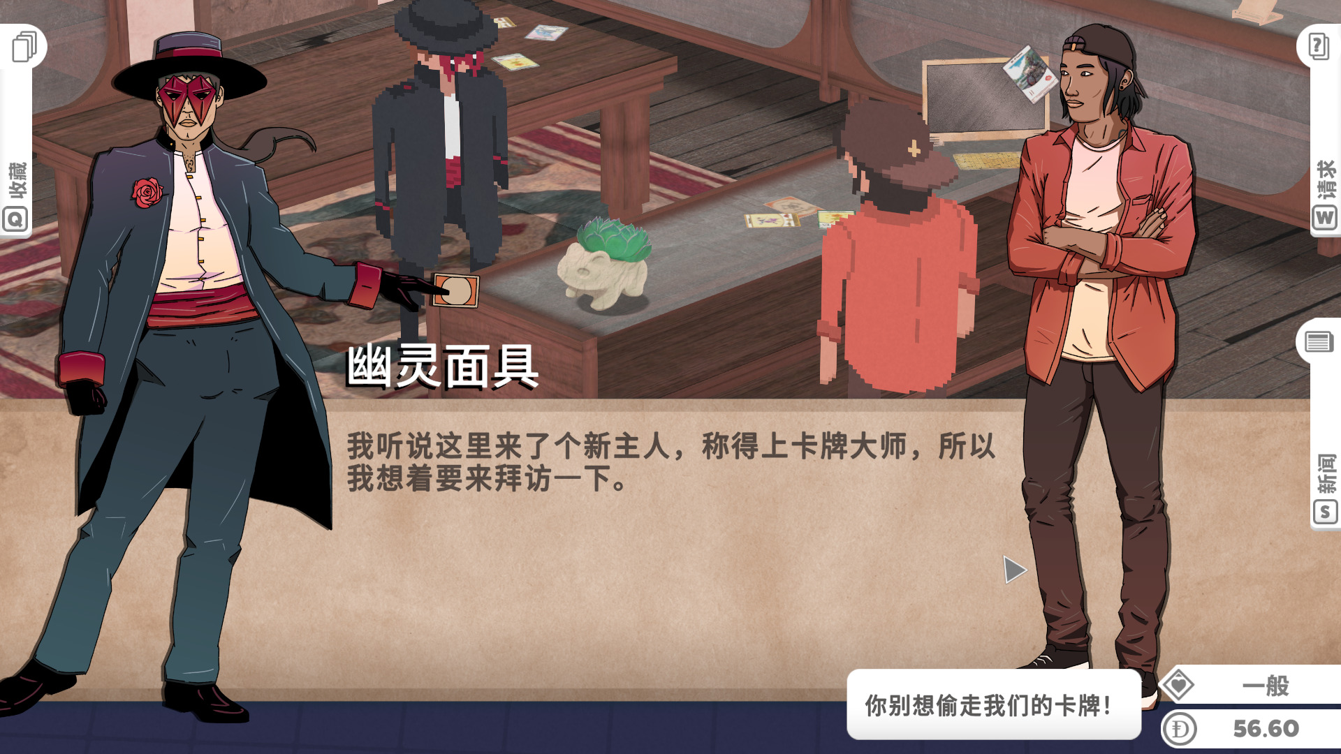 首先是这款游戏中我们本人是不能打牌的,这个太扯了,一开始那个幽灵面具找我打牌我还提起了劲,结果只是段剧情,我玩你这个游戏,全程只是买也太无聊了。何况你这个卡也太糙了。