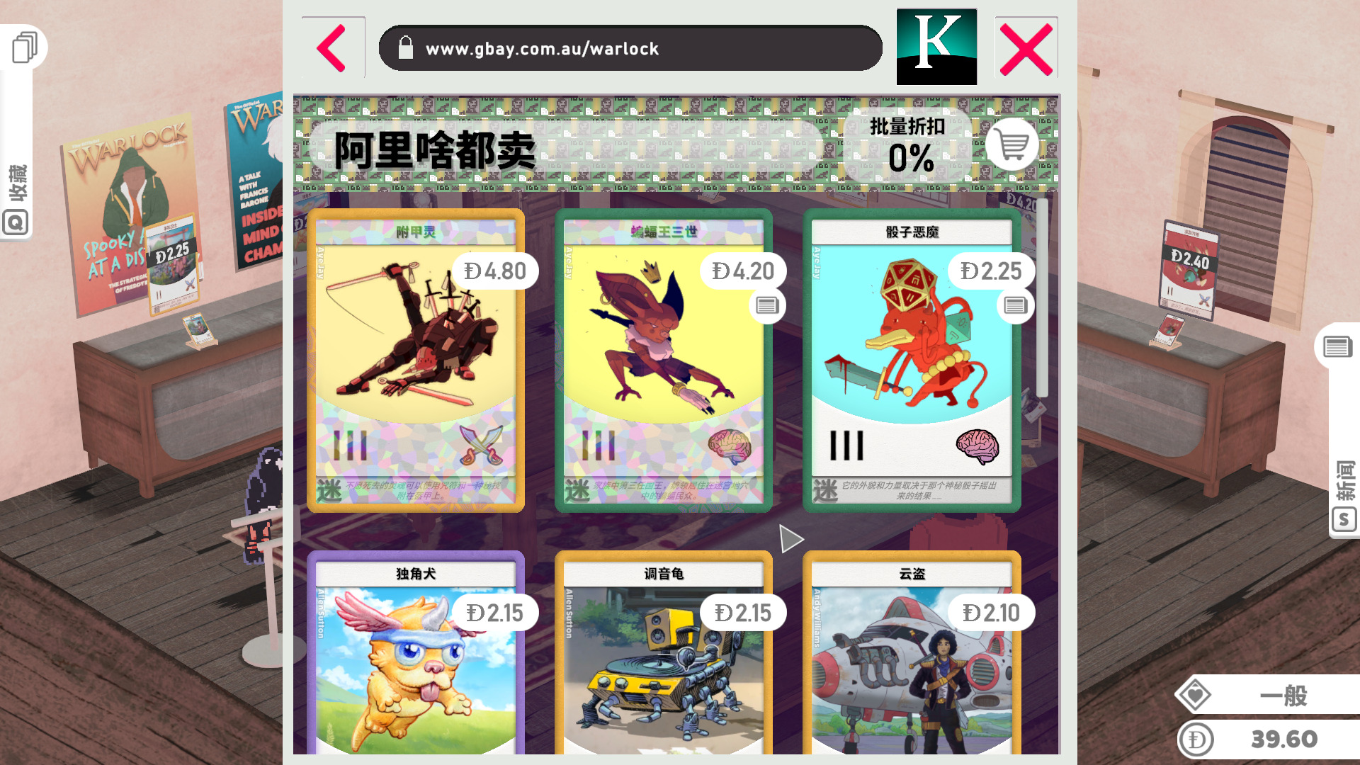 如果自己囤积了大量卖不出去的卡,也可以开启清仓大甩卖,这时所有设定的卡牌均为0.5美元,还能增加声誉。