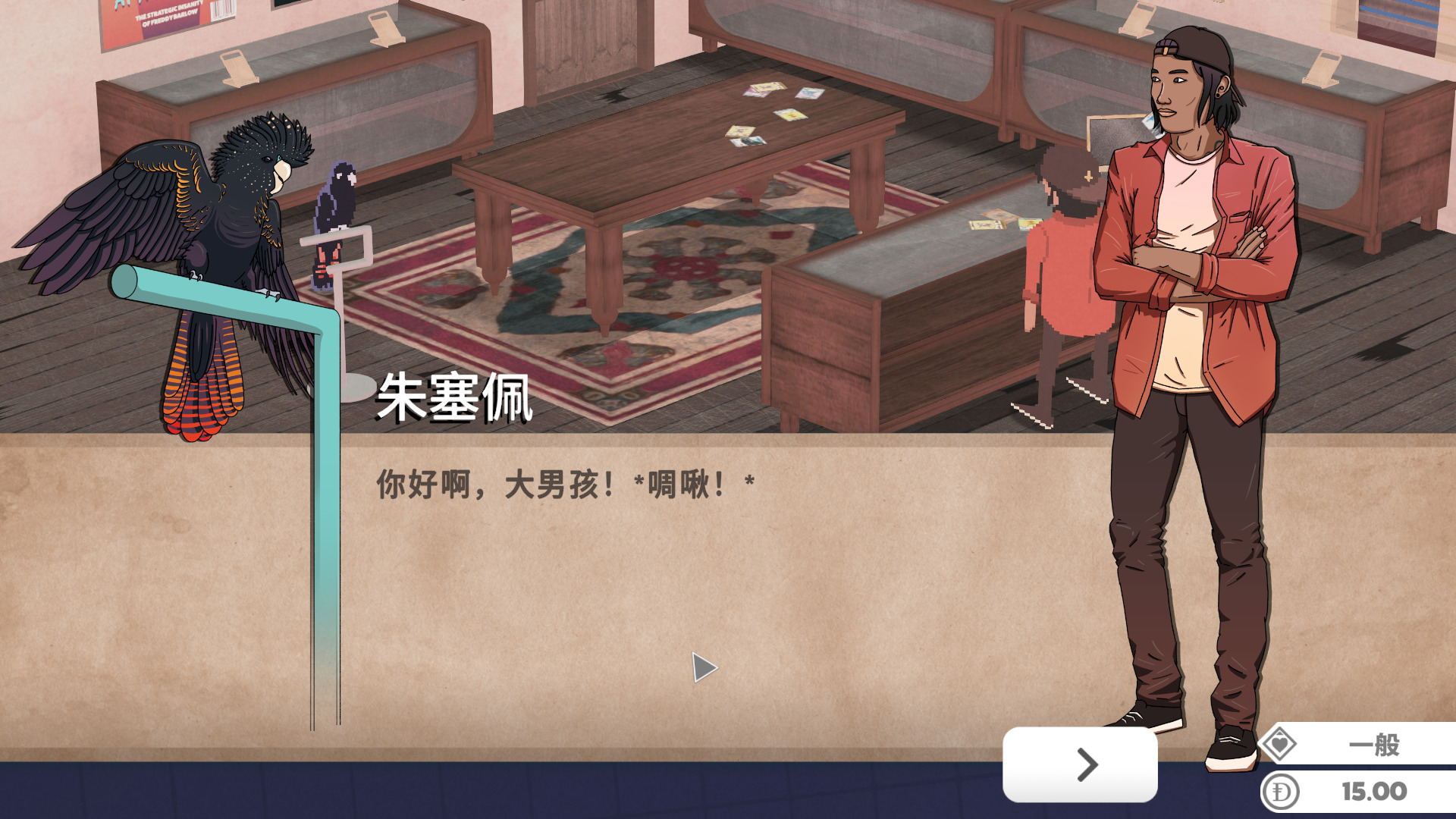 好在有人来引导我们,尽管它是一只鹦鹉,它叫朱塞佩是一只口齿伶俐的凤头鹦鹉,帮你——让顶级收藏家获得各种稀有度的卡牌,或者给附近的热心顾客施以援手。