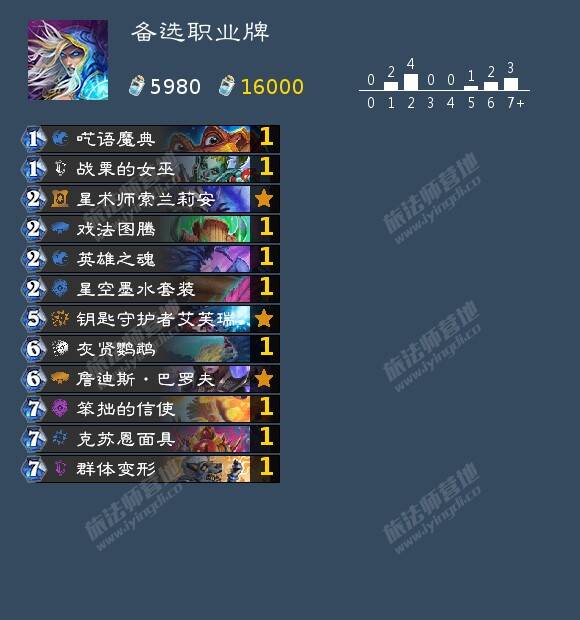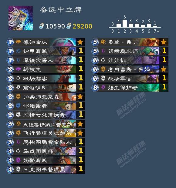 基本也逃不出这四大功能,比较好用的有护甲商贩、大德鲁伊纳拉雷克斯提供的优质卡、提高下限的感知宝珠、前期干扰牌前沿哨所、定向过牌泰兰·弗丁、话痨奥术师。