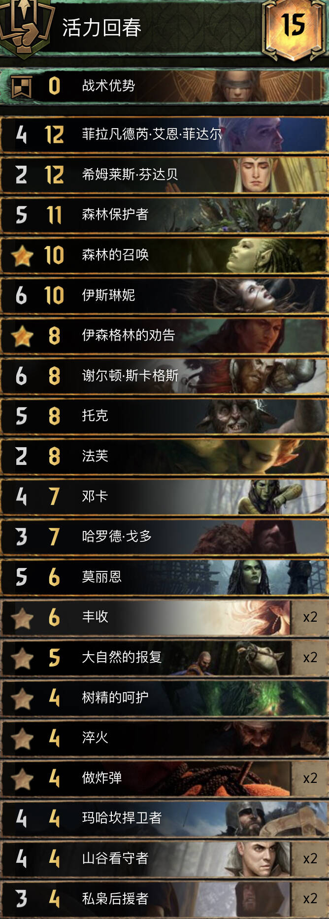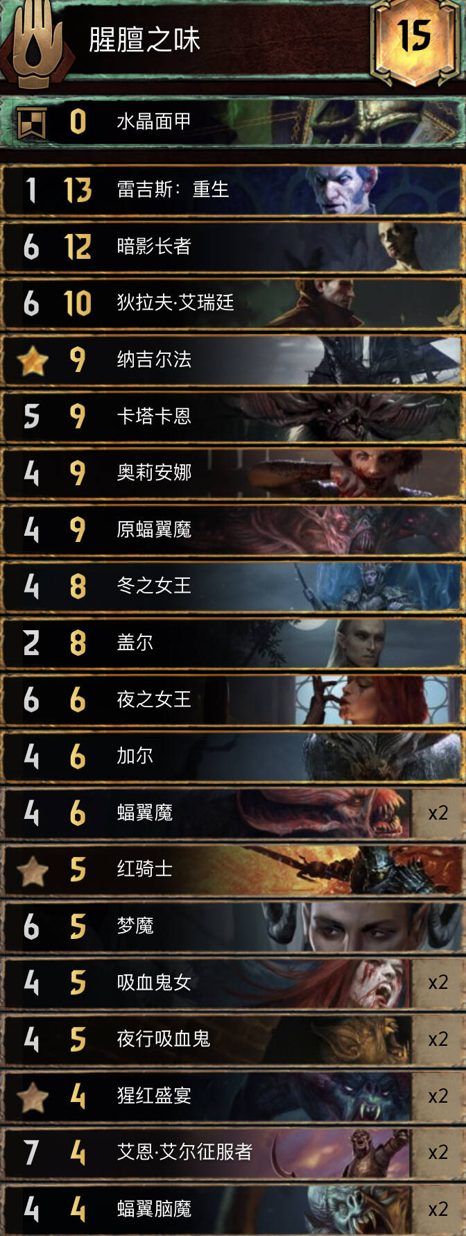 基本放弃了铜卡引擎走一个纯点数的路线,在对抗中速控制卡组时表现优异。