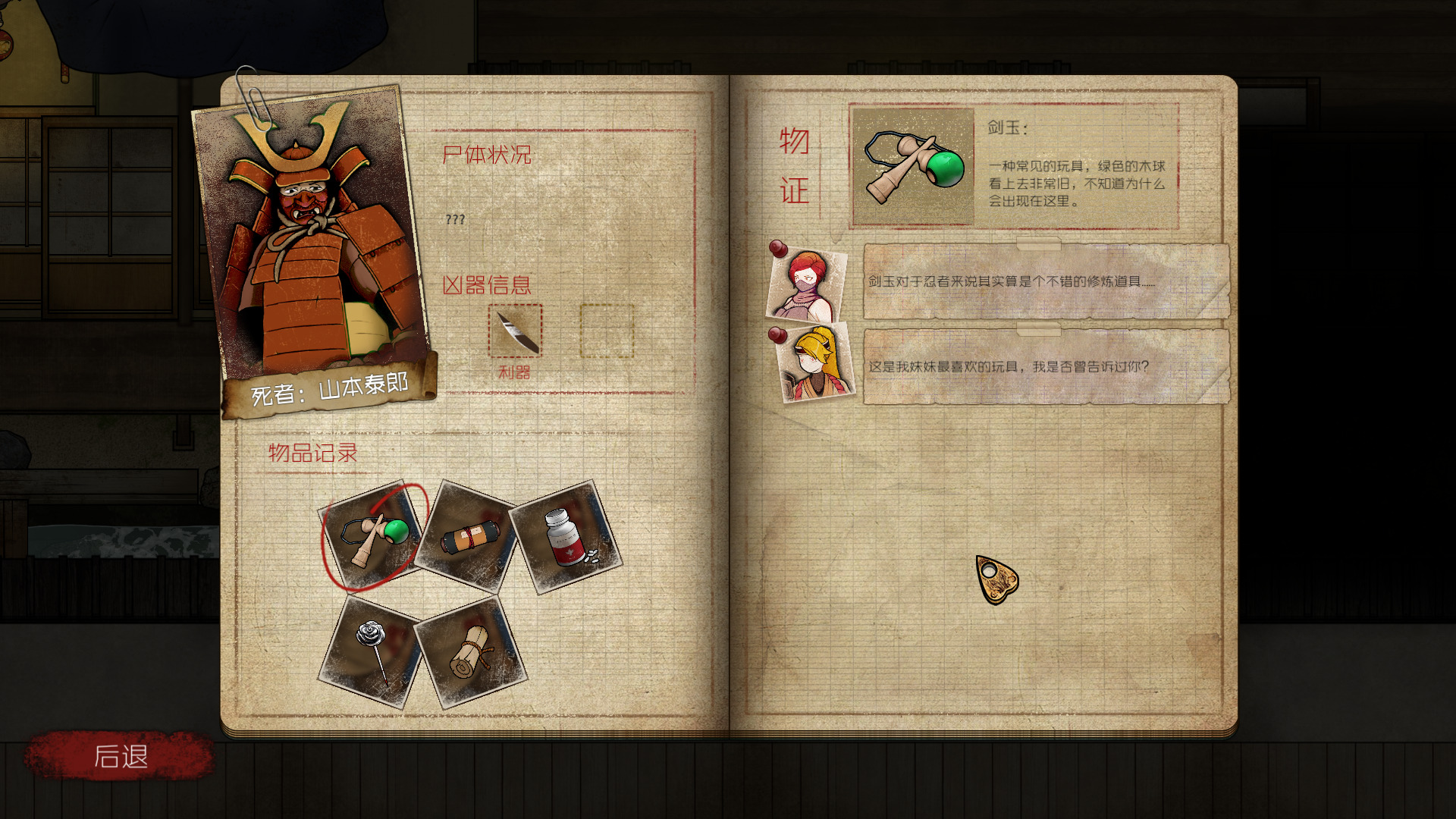 它的表面看起来像是带有恐怖元素的推理游戏,但实际上每个案子之间都有关联,玩家找到的真相未必是真相,游戏里找到的每一个物品都会被记录在档案室,在找齐每一章的每一关的所有物品并用玉佩正确超度之后,故事的真相才会显露出来。