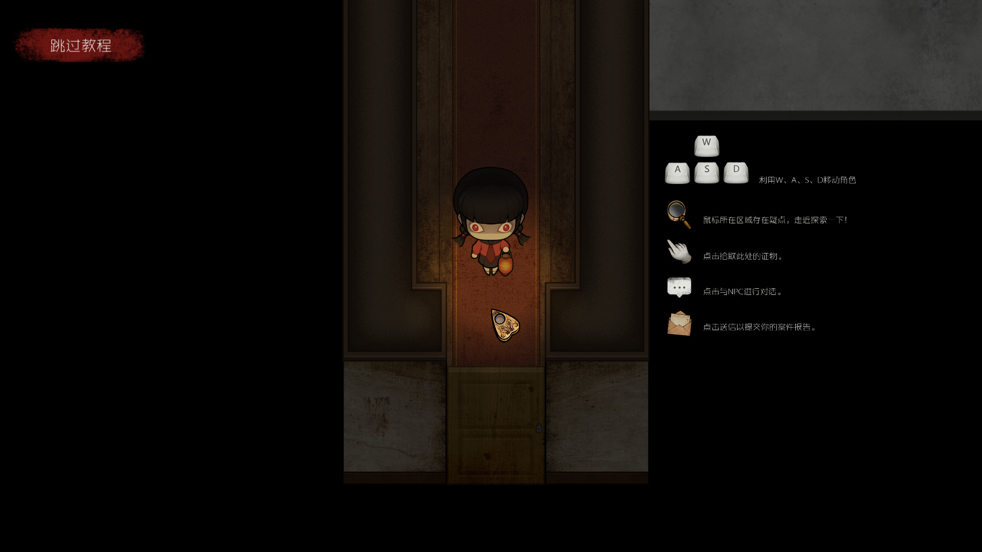 操作非常简单,WASD控制人物移动,寻找可疑的线索,最后提供足够的证据。尽管我们现在还不知道到底发生了什么。