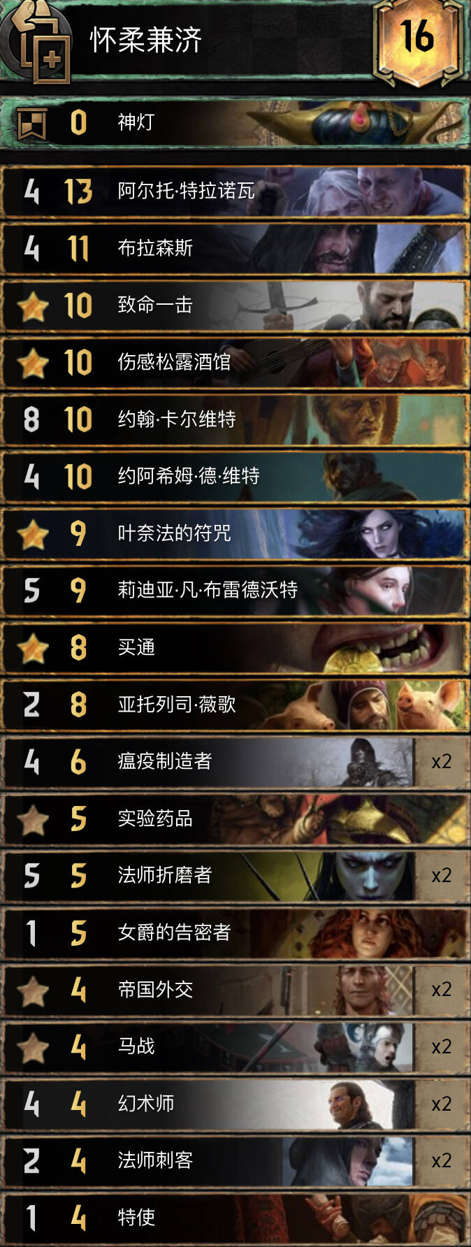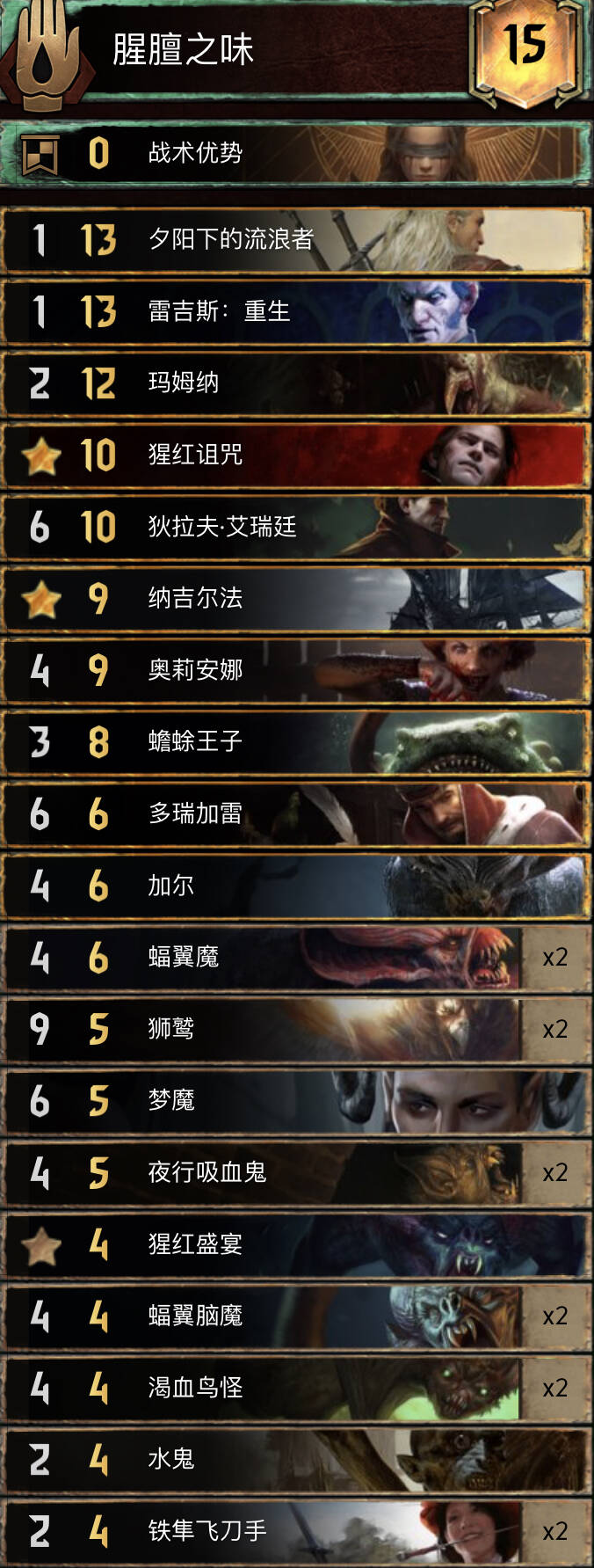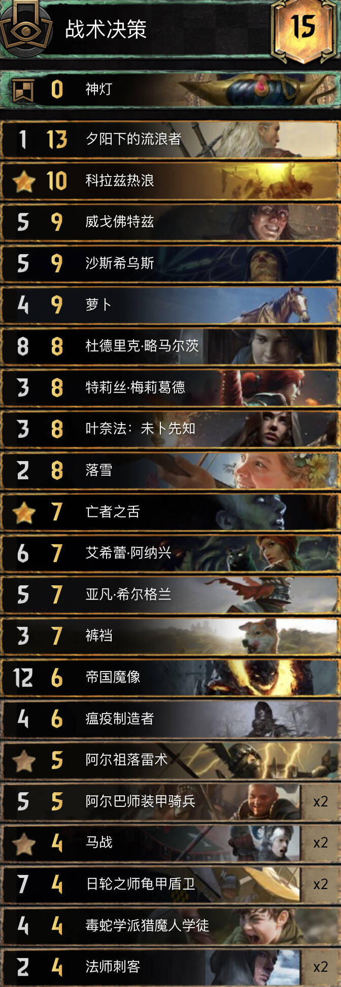 评选为十分制,有分数的均为有一定强度的主流卡组
