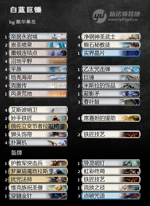 Hello大家好,我是成都高中生万智牌手凯尔希兰。在上周六成都MC万智牌店的摩登月赛中,侥幸用白蓝巨锤取得四强(约和),特意写这篇文章来分享一下战报以及神河霓朝记后白蓝巨锤的使用心得。