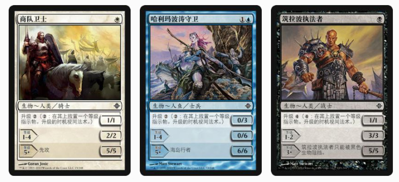 为什么烂?这三个生物的基础攻防并不差,但它们的升级异能让它们表现很惨。升级异能呼应天任斯人,但效果更弱,因为是法术时机。它比较差的地方还在于每次升级都需要花费大量法术力。