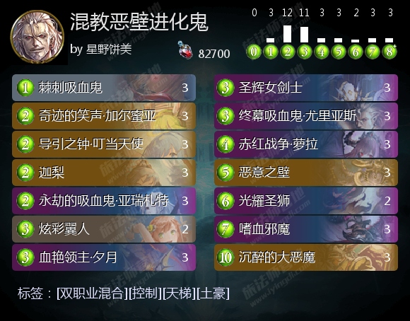 倘若能在第8回合以前将进化数堆够6次,这套牌还可以瞬念召唤嗜血邪魔,配合进化点和双圣辉,或双圣辉+加尔蜜亚,达成OTK。尤里亚斯的主战者效果也能打出直伤,降低斩杀难度。