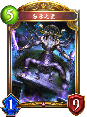 除了手抽恶壁以外,这套牌还可以通过炫彩翼人稳定检索恶壁,因此很容易在中期凑齐双恶壁,或恶壁+结晶恶壁的组合。2张恶壁能加倍惩罚效果,还有机会使对手的3~4血随从在攻击时“**”。此外,2张恶壁的组合不怕单解,而恶壁与结晶恶壁同时在场的话,则能防备绝灭之士兵长的入场曲,同样拥有战略价值。
