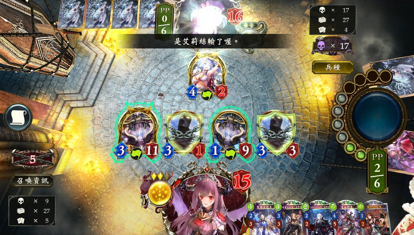 如果手牌不佳,中期尽快使用并进化尤里亚斯,并使用梦魇时分。
