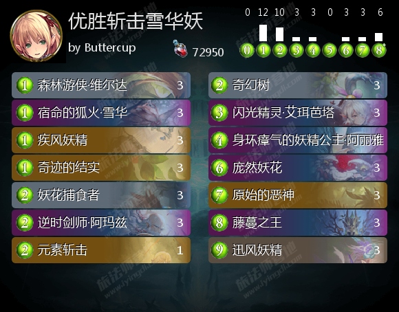 在此前的比赛中,越来越多的精灵玩家开始选择使用治愈妖精而非妖花捕食者,这点倒确实令人惊讶。毕竟,在很长一段时间里,妖花都是雪华妖中最受非议的一张单卡,其2费3/2疾驰的属性,无论是前期抢血还是中后期配合元素斩击斩杀,都非常实用,甚至足以给很多玩家留下心理阴影了。但是随着天梯和赛场中其他卡组的提速,精灵这套卡组在竞速上已经显现了颓势,相比之下利用回复拖慢游戏进程对于精灵来说也不是不利的选择,因为精灵有拉缇卡和雪华这两个高额且稳定的终结手段,只要游戏能拖下去的话,精灵总是能赢的。