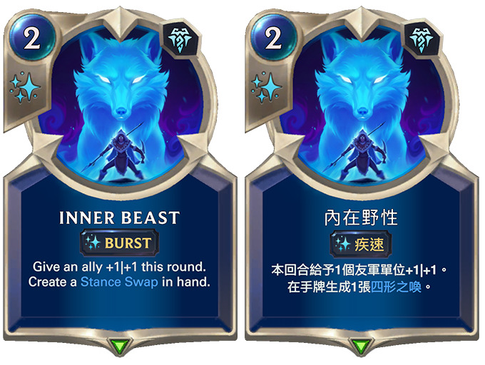 乌迪尔的新升级条件与形意有关,而「体内野兽」这张应用上相当灵活的卡牌,可以跟很多弗雷尔卓德卡牌搭配使用,同时为乌迪尔本身带来更显著的效益。
