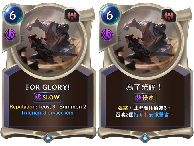 除了新卡牌「为了荣耀!」和乐芙兰的改动,我们也想加强威名触发时的效果。「冷酷碎骨者」现在虽然消耗值稍微增加,但在威名触发之后,更能有效终结对局。