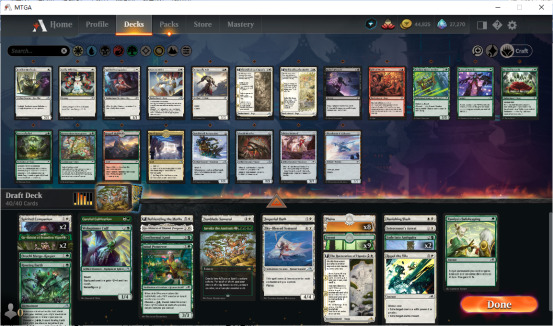 按阿胡的习惯还是先看看高胜思路记录,加上现开的黑绿7胜,轮抽前4个7胜是白绿、红白、红蓝、蓝黑,刚好每个颜色都出现2次,那个时候我就感觉每个色组都有得打意味着这是一个很好玩的系列了,到现在更是如此,强烈推荐大家听听修玛侃万智的最新一期,里面对这个系列游戏体验好的总结说得很好,一是炸弹不少但不是一出来就无法互动要命的,二是去除虽多但又都是有些限制的。