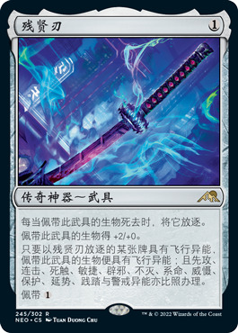 这里还是想引用修玛侃万智中对红白武士单踢这个官方思路的评价——红白是快攻,但你的异能需要你单踢,单踢怎么快得起来,思路和异能闹起矛盾了,这还好得了?而我的这次7胜红白属于非典型的靠稀有度撑起来的胜利,特别是残贤刃这种赖皮单卡,一费出一费戴,生物死了附属异能,这打几个回合你出的每个生物都变成敏捷、警戒、飞行、系命、践踏,还加2攻,还打个屁啊。