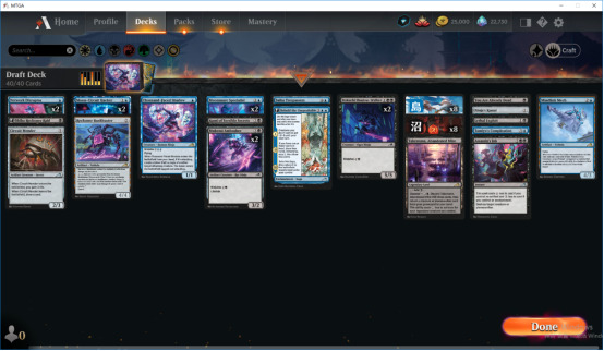 我的这次白蓝7胜主要是想跟大家交流一下抽牌的过程,没有用图片或视频记录,毕竟谁能想到会抽成这种样子呢:一包一抓开出发明迭代志,自然想着进蓝色,如果想着跟发明迭代志有配合的话,似乎红蓝神器更多一点,但是红蓝在本系列表现一般,所以另一个颜色只能等后面看看信号来定,第一包抓完以后,蓝色最多,白色次之,没拿到黑色,红绿有一点,结果第二包上来开出了神河之魂香醍,但是它并不是组白蓝的最后一根稻草,而是第二包第3、4抓时传过来的辉耀复兴!