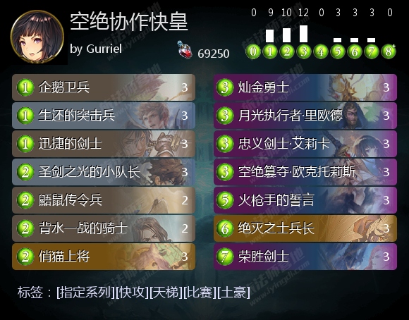 战绩:Gurriel和Lotus_Pas分别使用这套牌晋级Rage春季赛8强(BO3,约15轮,另一套牌分别是谢幕曲进化死和拉缇卡雪华妖)。